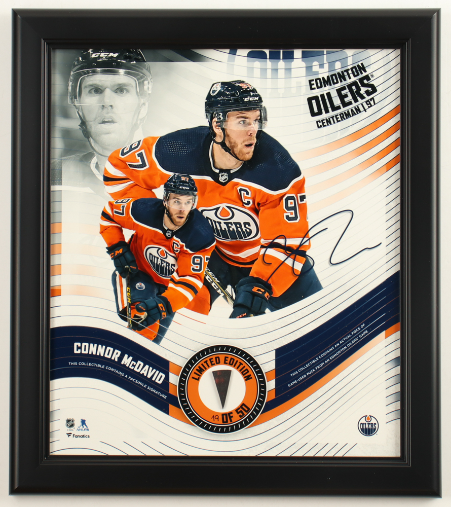 Connor McDavid LE Oilers Custom Framed Photo with Game-Used Puck Display (Fanatics)