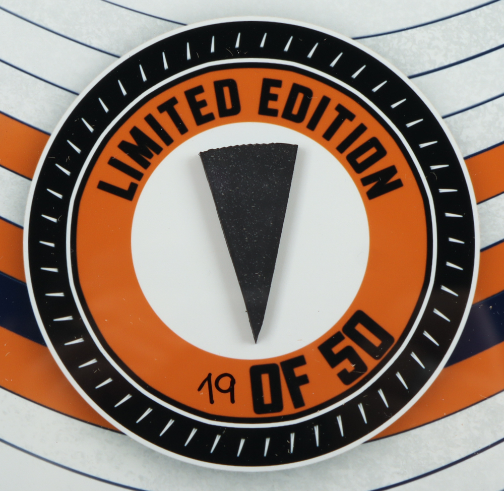 Custom frame measures approximately 15" x 17" in size and features a photo of Connor McDavid (Edmonton Oilers) with a Game-Used puck piece. The display is limited edition and numbered #19/50. Please note, the display is unsigned and the visible signature is a facsimile.