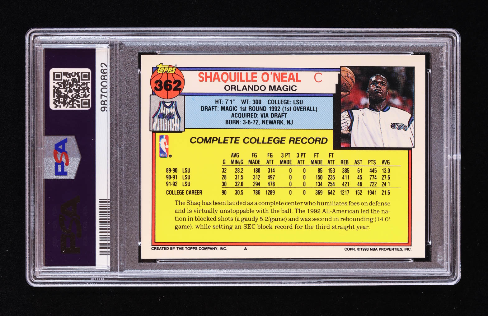 Shaquille O'Neal 1992-93 Topps #362 RC (PSA 9)