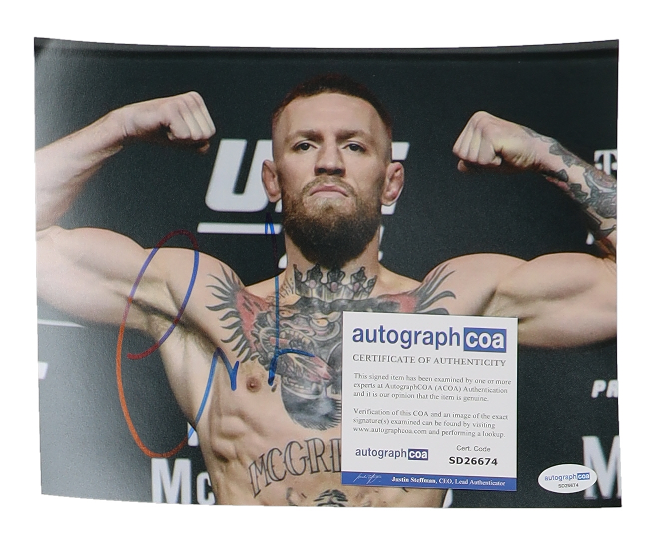 Photo measures 8" x 10" in size and has been hand-signed by Conor McGregor.