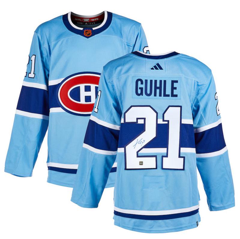 Adidas style jersey with everything sewn on, size 48. Hand-signed by Kaiden Guhle (Montreal Canadiens).