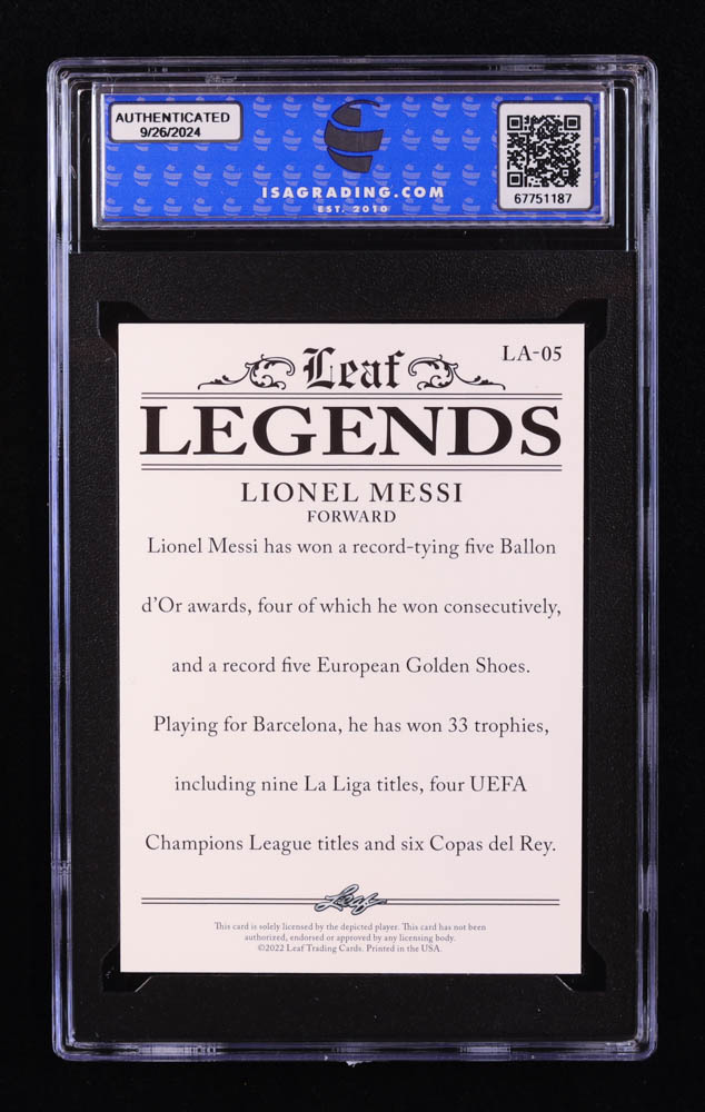 Lionel Messi 2022 Leaf Legends Achievement #LA05 (ISA 10)