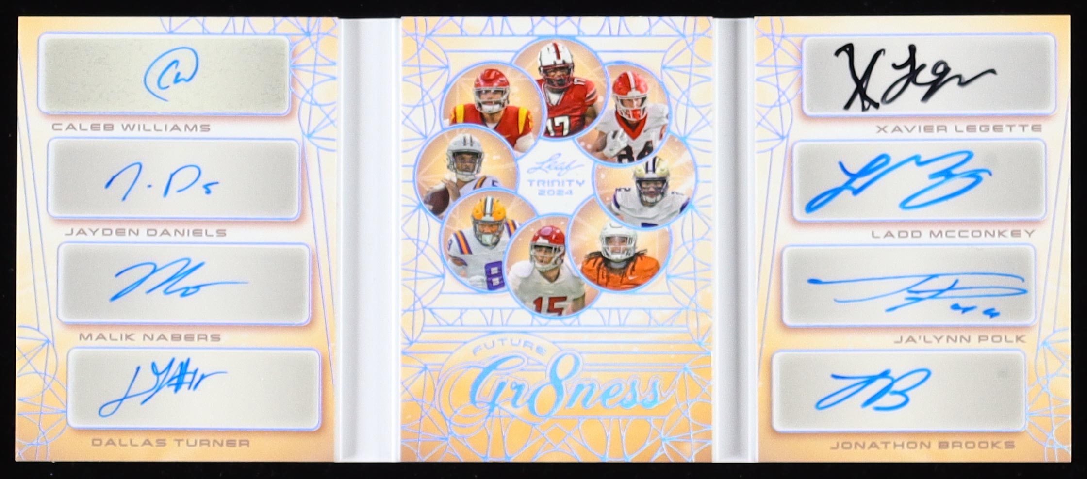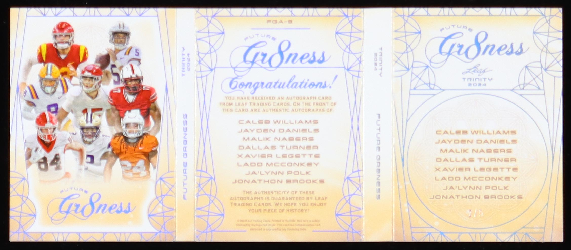 2024 Leaf Trinity Future Gr8ness Autographs Prismatic Rainbow #FGA8 Caleb Williams / Jayden Daniels / Malik Nabers / Dallas Turner / Ladd McConkey / Jonathan Brooks / Xavier Legette / Ja'Lynn Polk #2/5