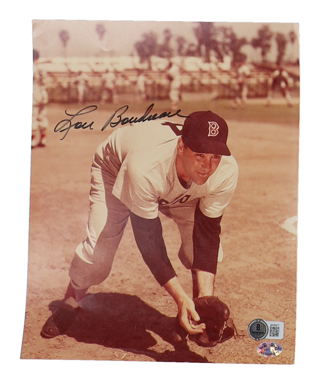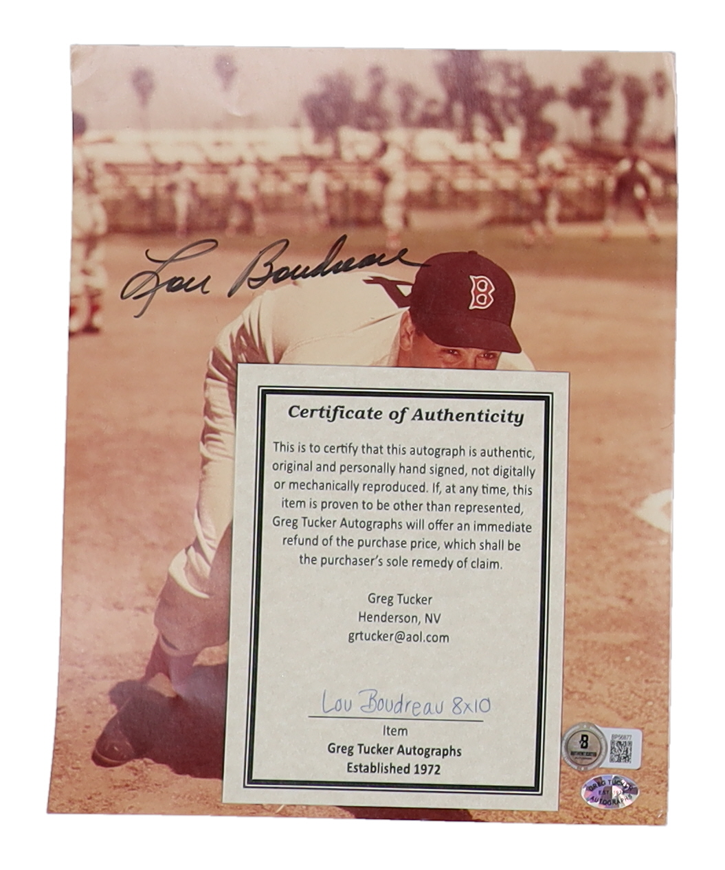 Photo measures 8" x 10" in size. Hand-signed by Lou Boudreau (D. 2001, Boston Red Sox, HOF). Please note, minor creasing on the corners.