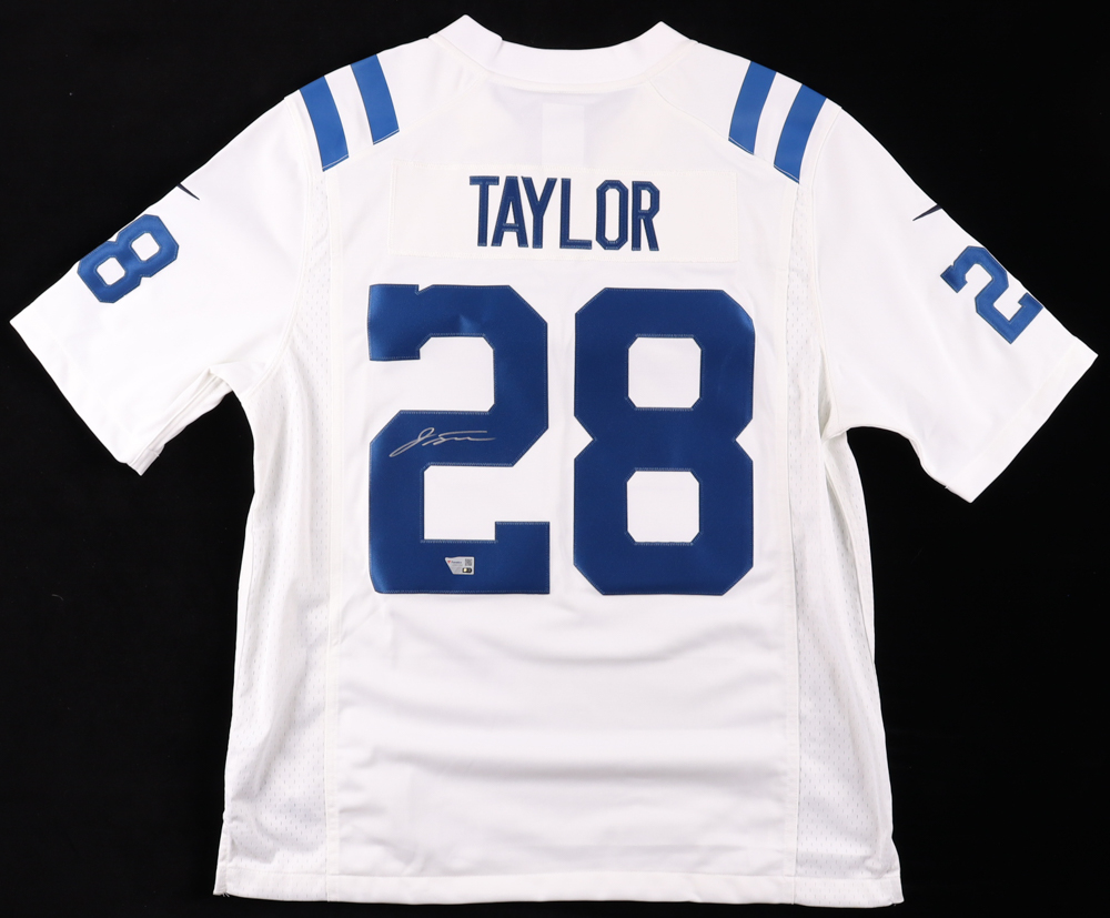 Nike jersey. Everything sewn on, size L. Hand-signed by Jonathan Taylor (Indianapolis Colts).