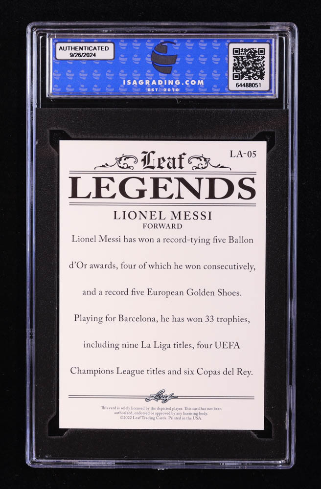 Lionel Messi 2022 Leaf Legends Achievement #LA05 (ISA 10)
