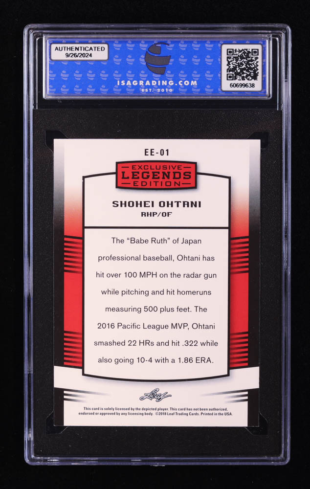 Shohei Ohtani 2018 Leaf Ohtani Legends Exclusive Edition #EE01 RC (ISA 10)
