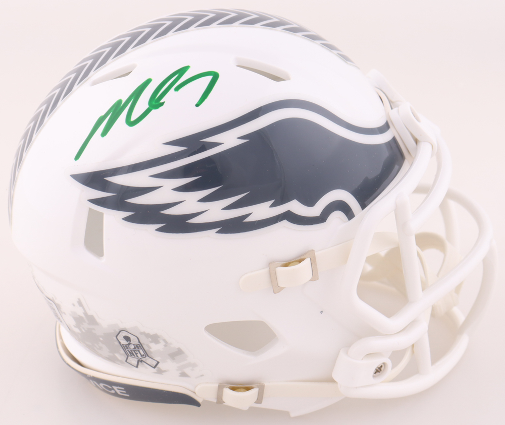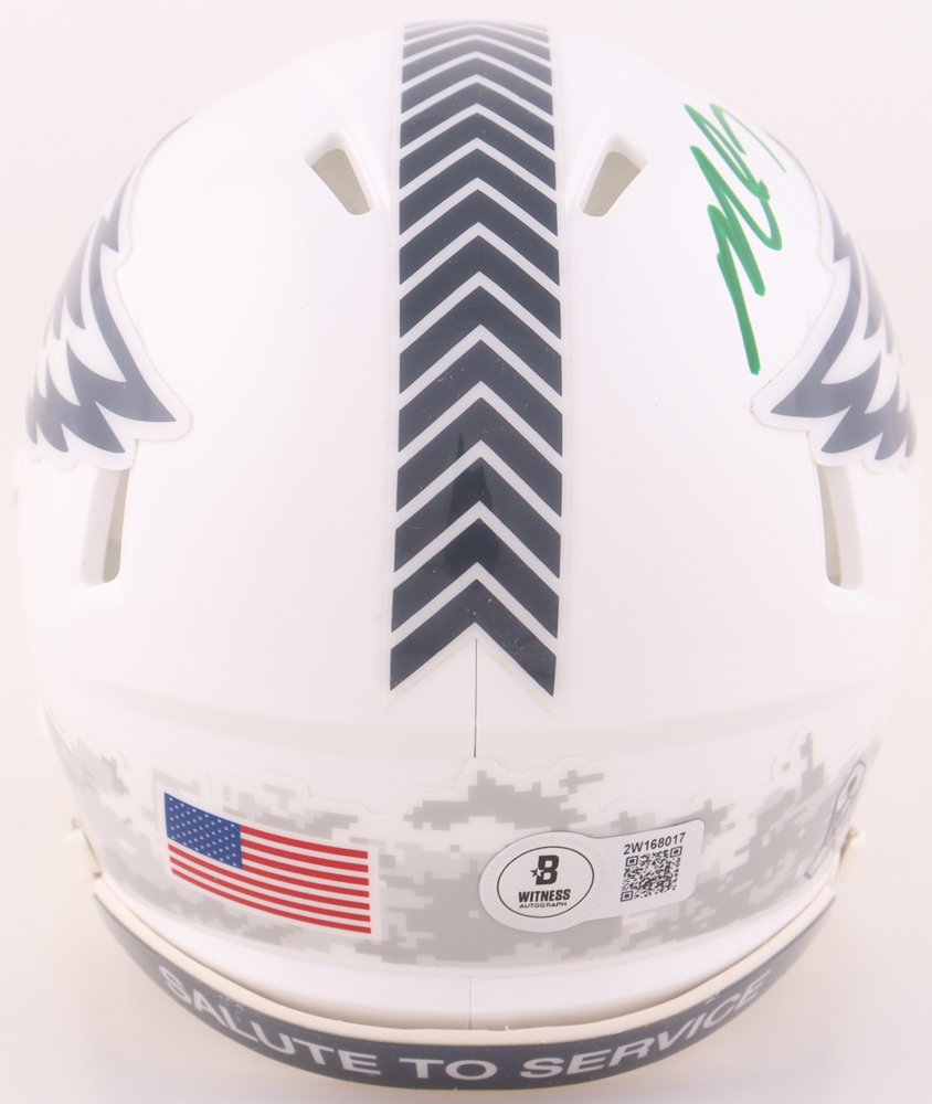 Riddell Philadelphia Eagles Salute to Service Alternate Speed mini helmet. Hand-signed by Michael Vick.