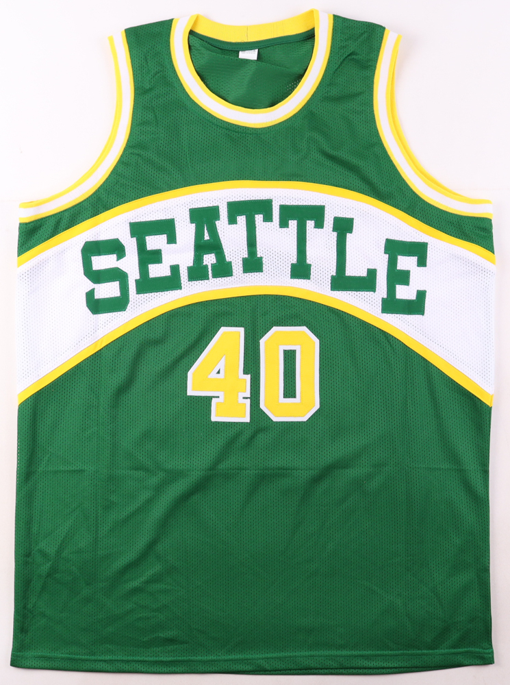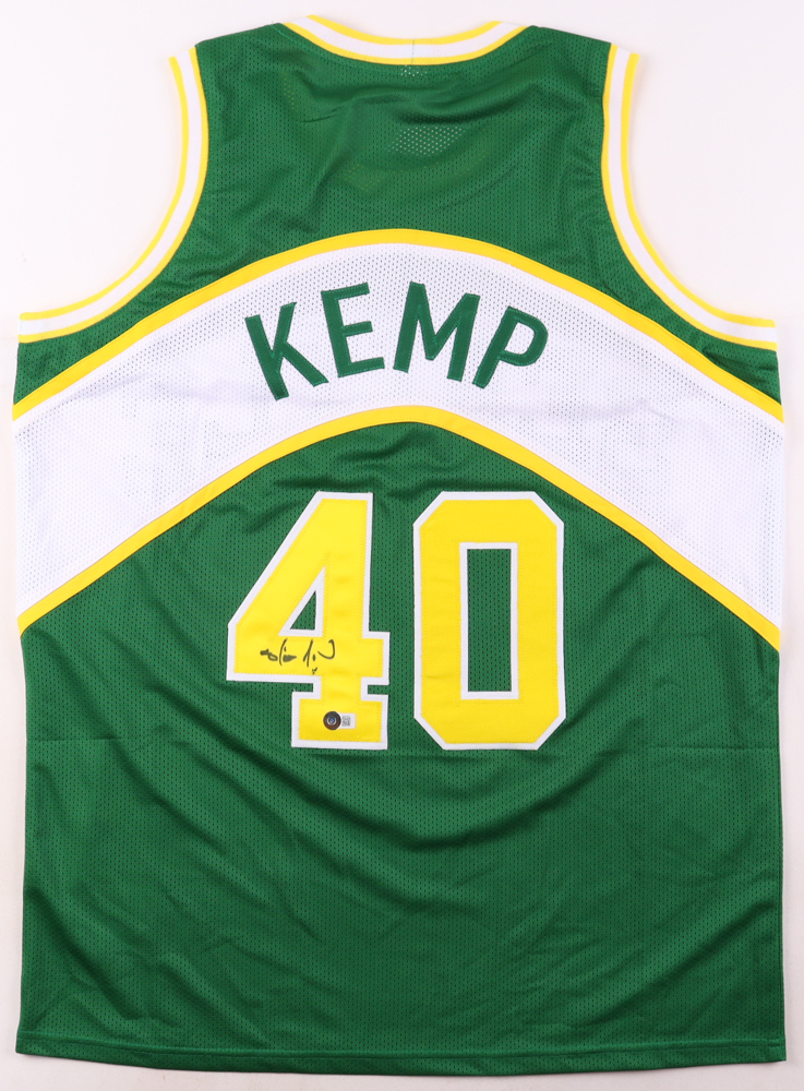 Custom jersey. Everything is sewn on, size XL. Hand-signed by Shawn Kemp. Please note, the signature has bled.