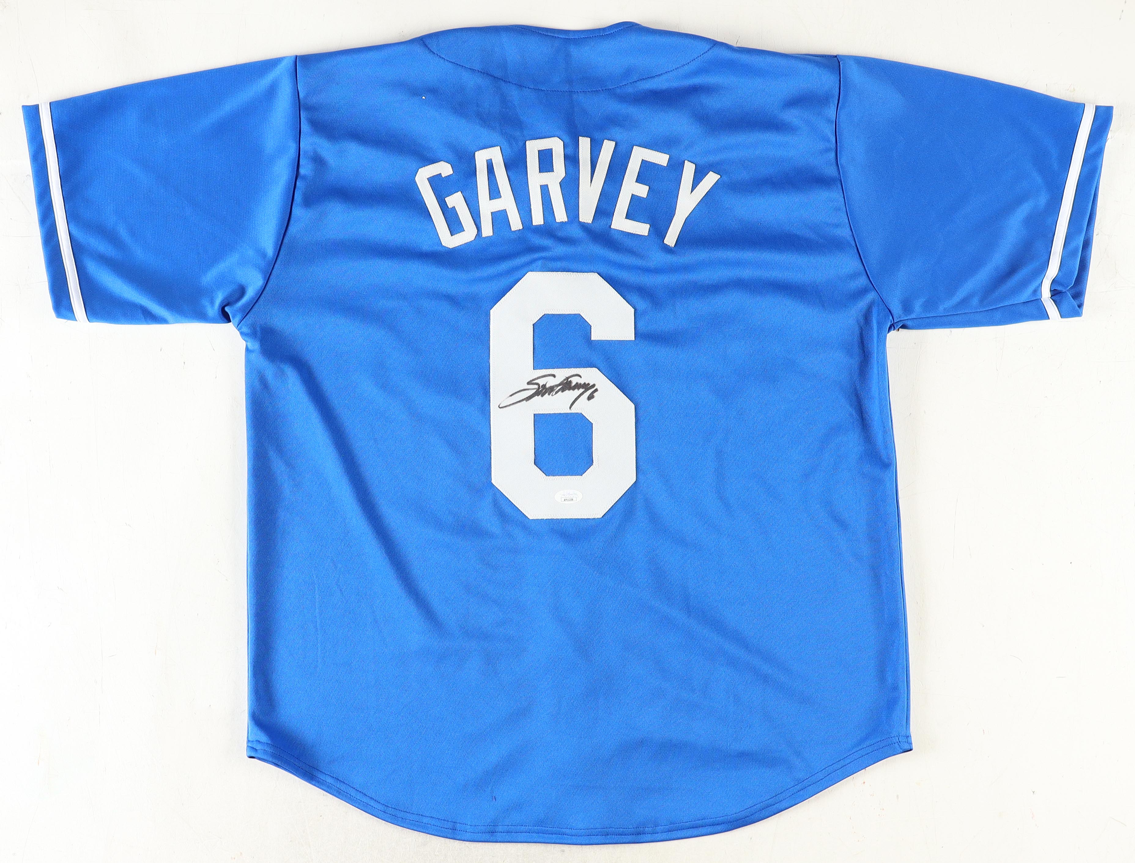 Custom jersey. Everything sewn on, size XL. Hand-signed by Steve Garvey.