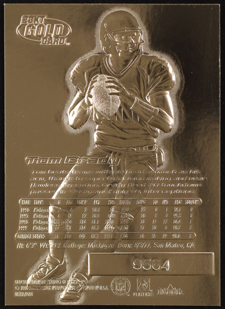 Tom Brady 2000 Fleer Ultra 23KT Gold Blue Metallic Signature Series RC