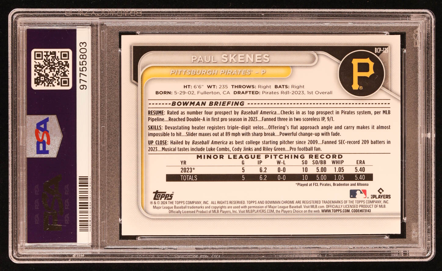 Paul Skenes 2024 Bowman Chrome Prospects #BCP125 RC (PSA 10)