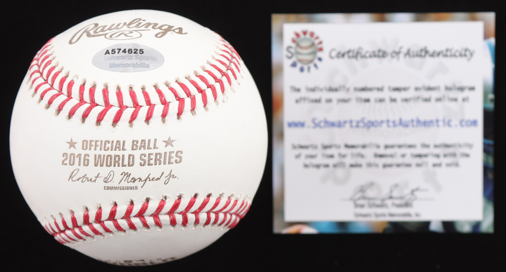 Rawlings Official 2016 World Series Baseball. Hand-signed and inscribed by Chris Coghlan (Chicago Cubs). Please note, there are minor stains on the baseball.