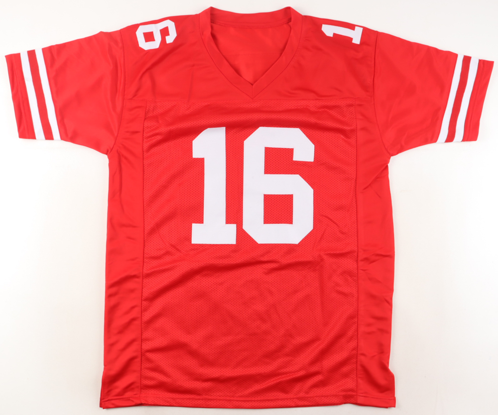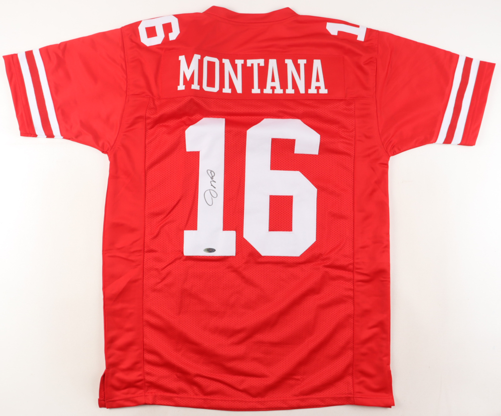 Custom jersey. Everything is sewn on, size XL. Hand-signed by Joe Montana (HOF).
