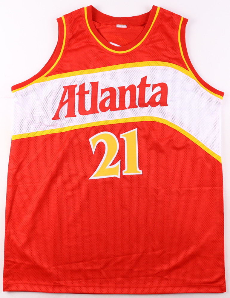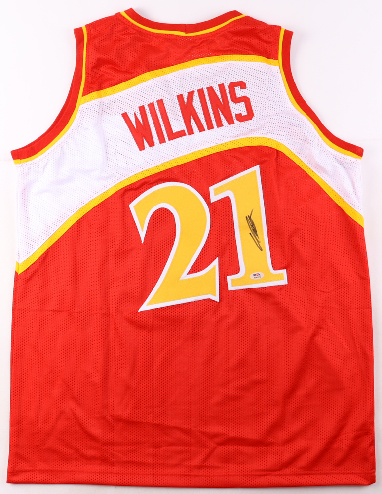 Custom jersey with everything is sewn on, size XL. Hand-signed by Dominique Wilkins (HOF).