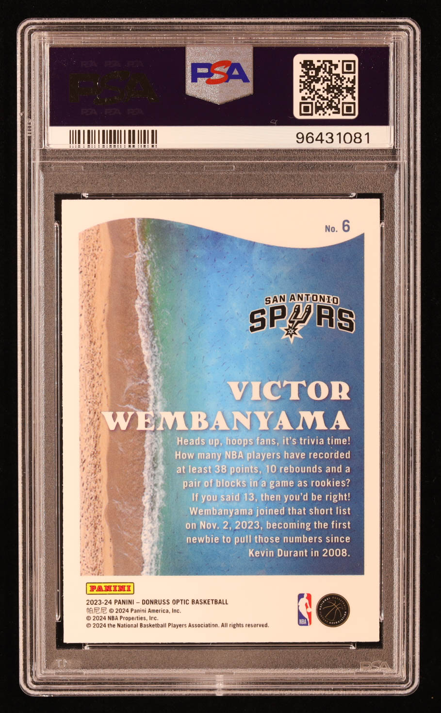 Victor Wembanyama 2023-24 Donruss Optic Splash #6 RC (PSA 10)