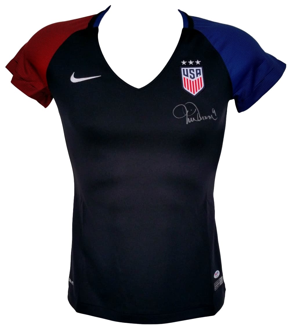 Nike on-field style jersey has been hand-signed in silver paint pen by Mia Hamm (HOF).