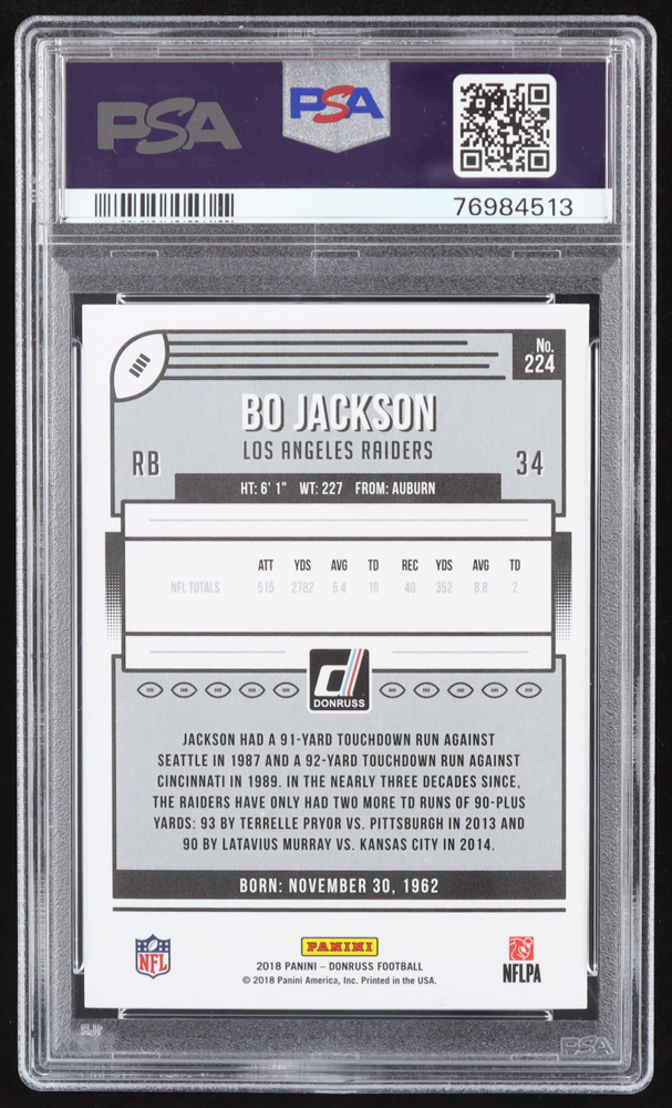 Bo Jackson 2018 Donruss #224 (PSA 10)