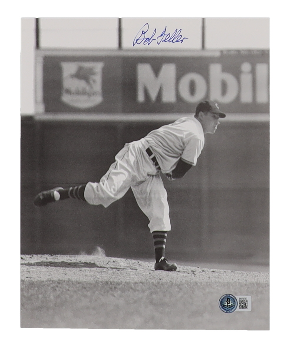 Photo measures 8" x 10" in size. Hand-signed by Bob Feller (D. 2010, Cleveland Indians, HOF).