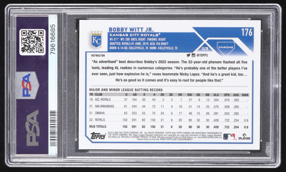 Bobby Witt Jr. 2023 Topps Chrome Refractors #176 (PSA 9)