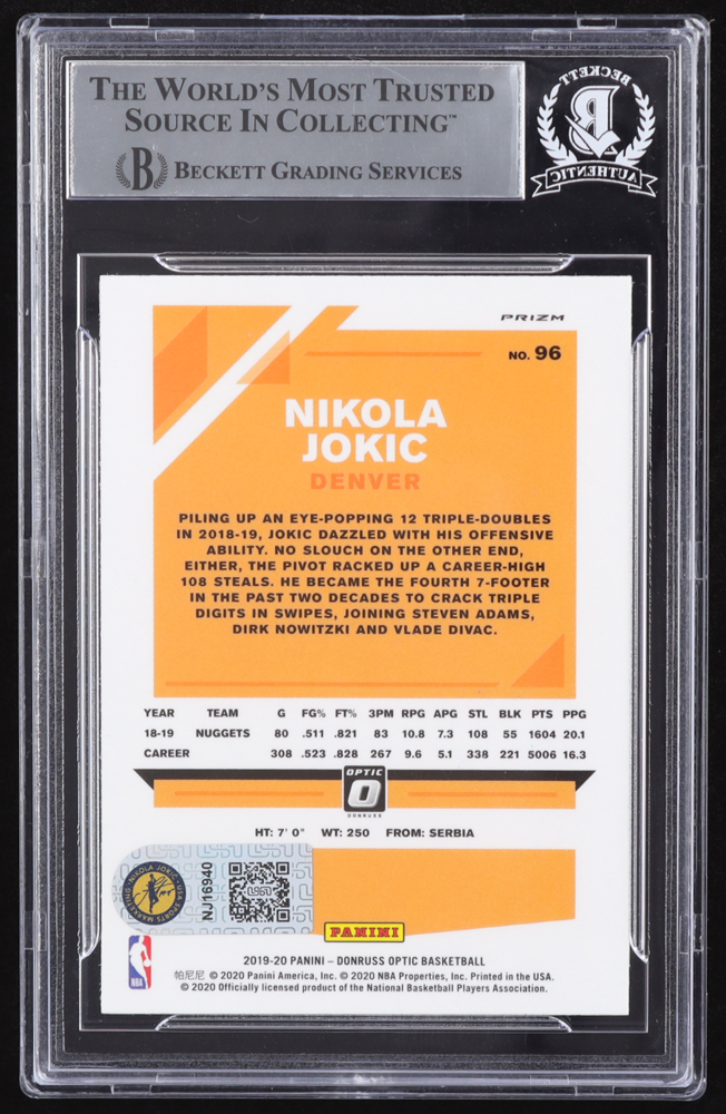 Nikola Jokic Signed 2019-20 Donruss Optic Hyper Pink #96 (BGS)