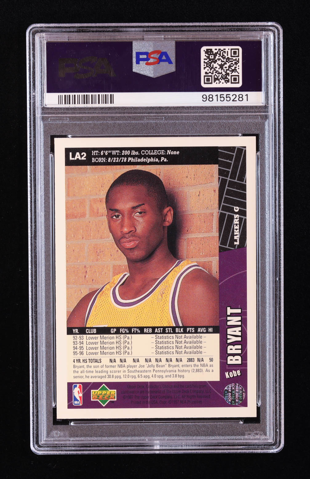Kobe Bryant 1996-97 Collector's Choice Los Angeles Lakers #LA2 RC (PSA 9)