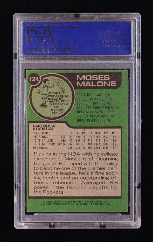 Moses Malone Signed 1977-78 Topps #124 (PSA)