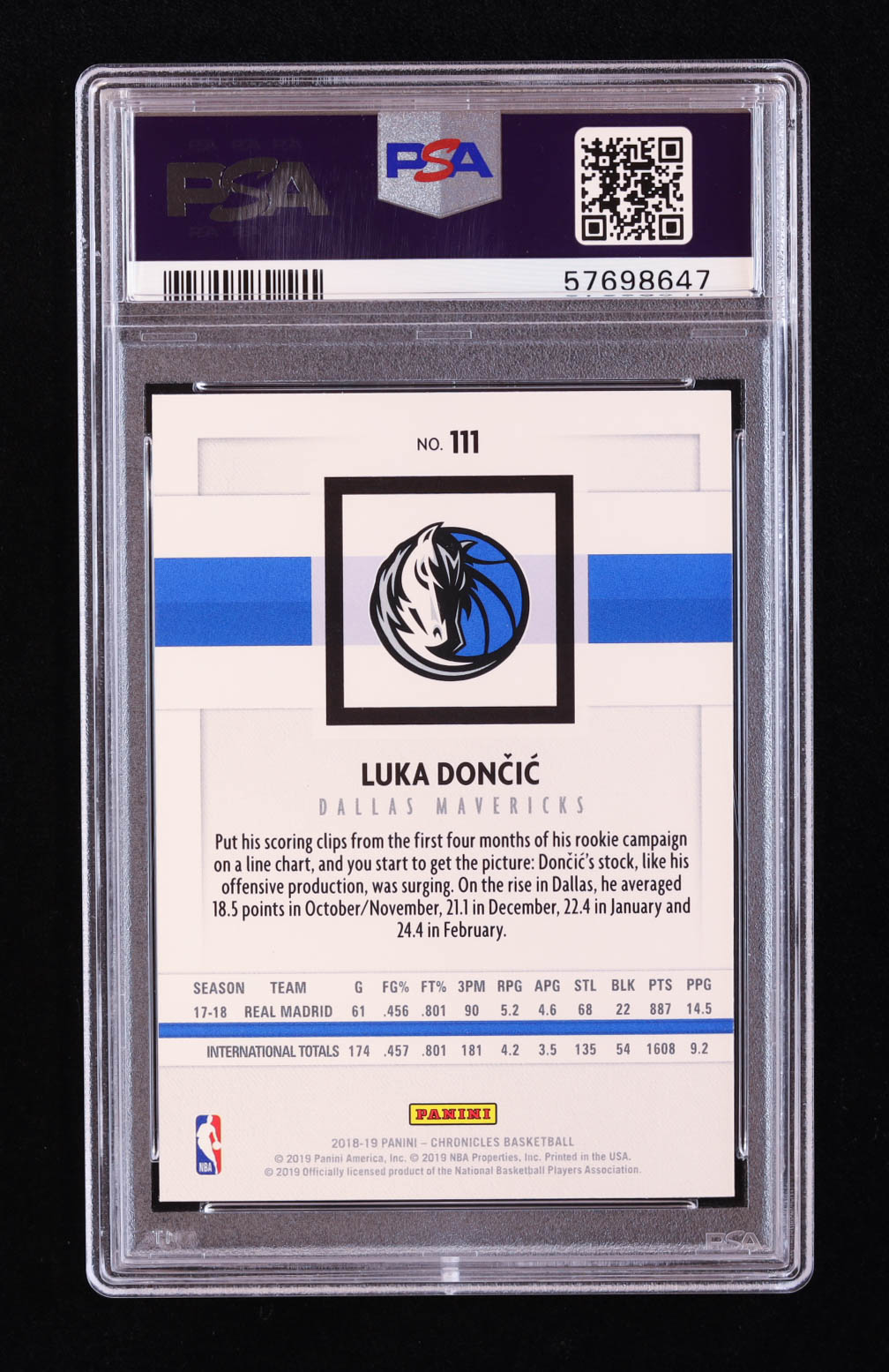 Luka Doncic 2018-19 Panini Chronicles #111 RC / Panini (PSA 9)