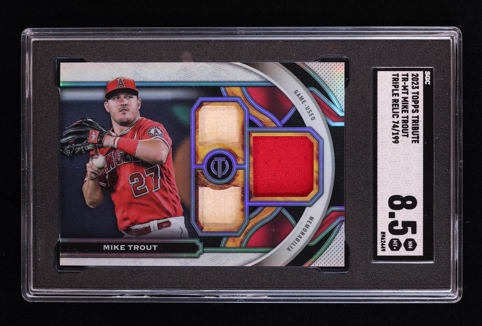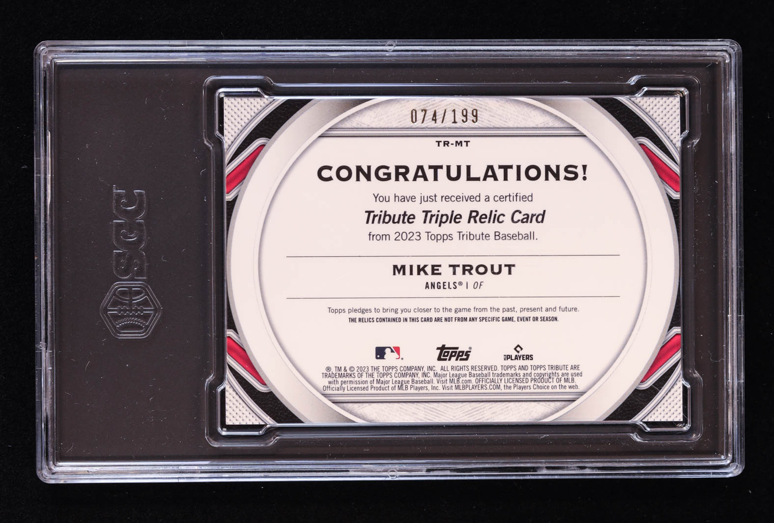 Mike Trout 2023 Topps Tribute Triple Relics #TRMT #074/199 (SGC 8.5)