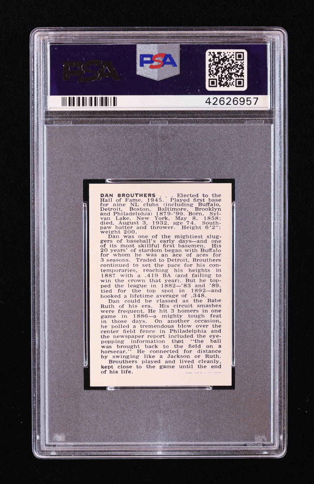 Dan Brouthers 1950-56 Callahan HOF W576 #7 (PSA 8)