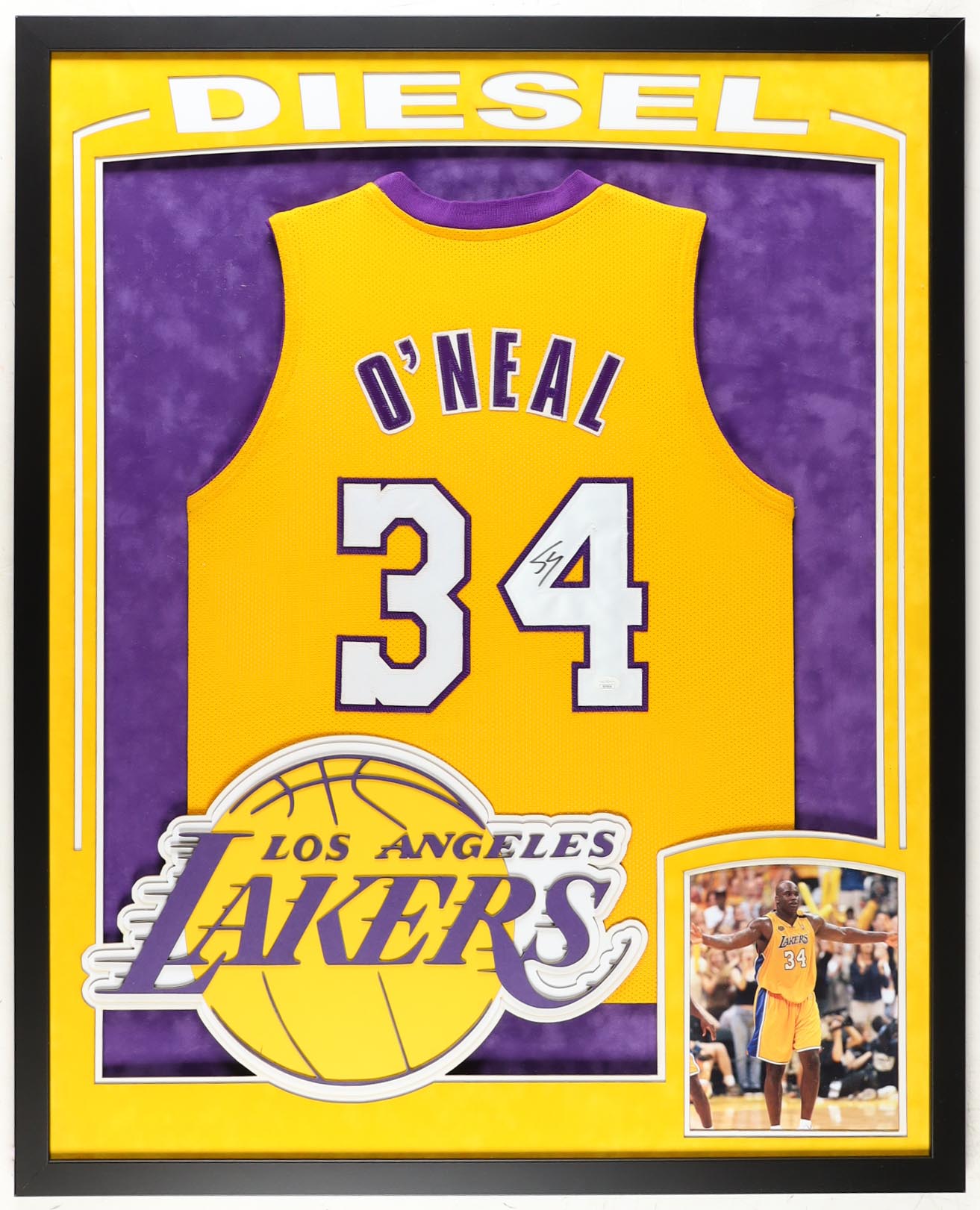 Custom frame measures approximately 34" x 42" in size and features a jersey hand-signed by Shaquille O'Neal (HOF).