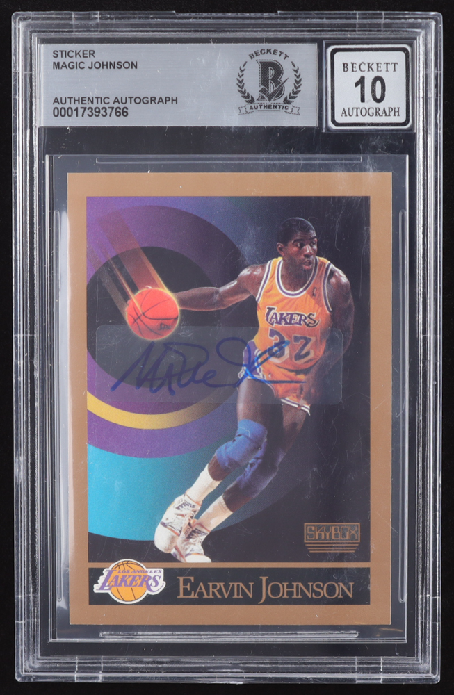 Magic Johnson Signed Sticker on 1990-91 SkyBox #138 (BGS | Auto 10)