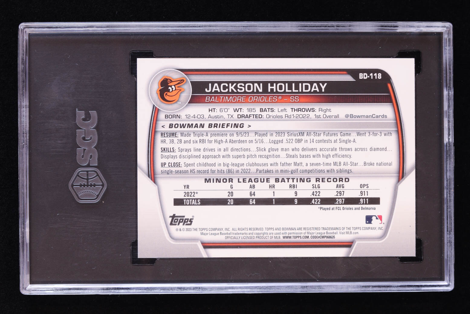 Jackson Holliday 2023 Bowman Draft #BD118 RC (SGC 10)