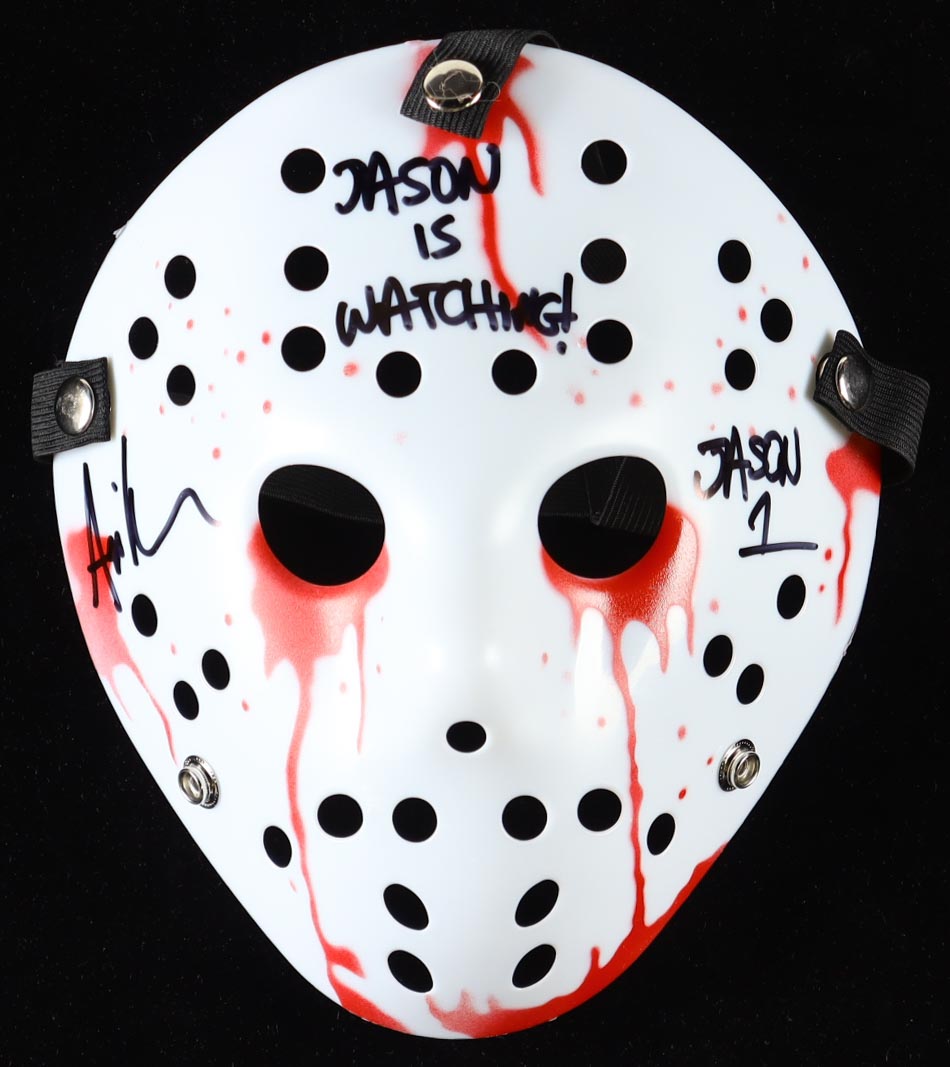 Full-size replica "Jason" mask. Hand-signed and inscribed by Ari Lehman (Jason Voorhees).