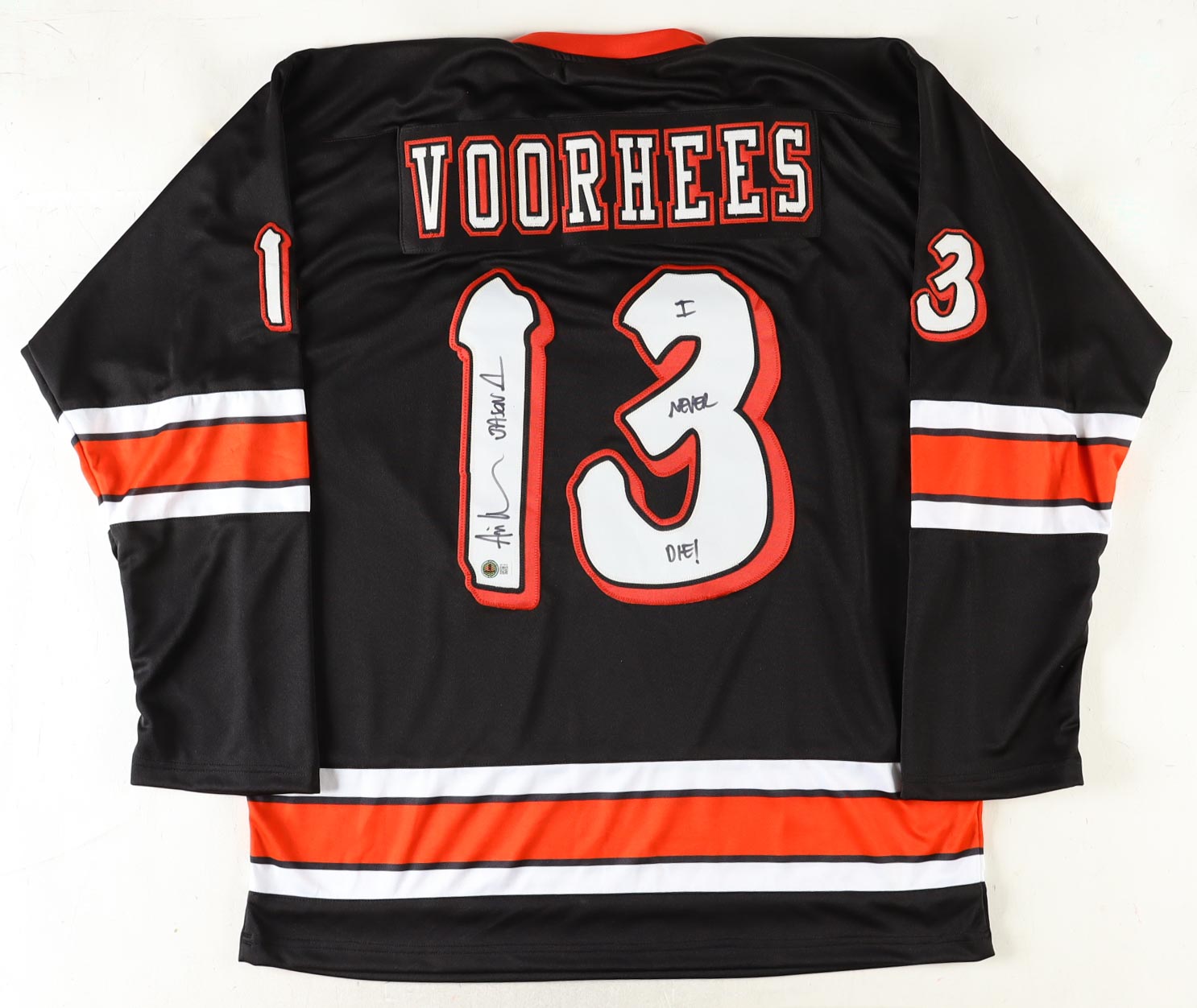 Custom jersey. Everything is sewn on, size XL. Hand-signed and inscribed by Ari Lehman (Jason Voorhees).
