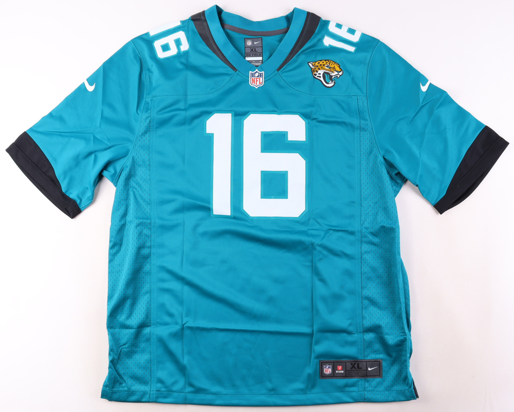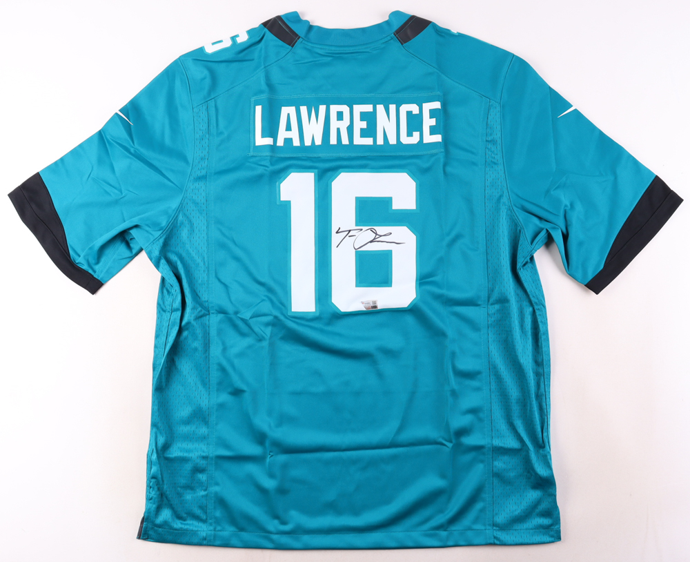 Nike style jersey with everything printed on, size XL. Hand-signed by Trevor Lawrence (Jacksonville Jaguars).