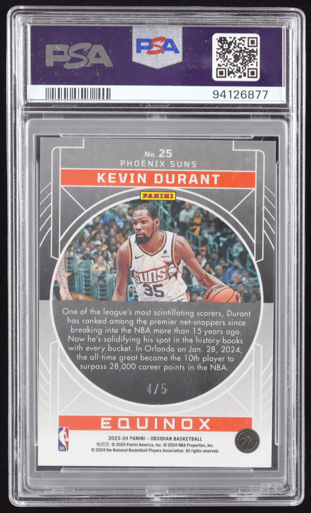 Kevin Durant 2023-24 Panini Obsidian Equinox Electric Etch Deep Sea Mojo #25 #4/5 (PSA 10)
