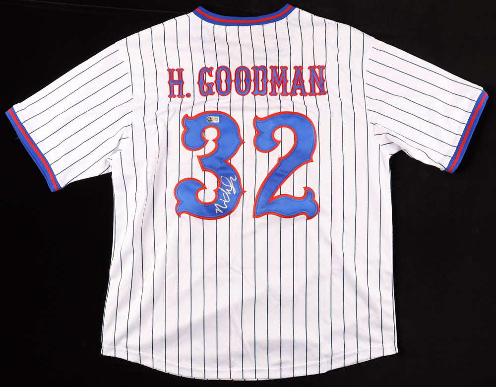 Custom jersey. Everything sewn on, size L. Hand-signed and inscribed by Nick Swardson.