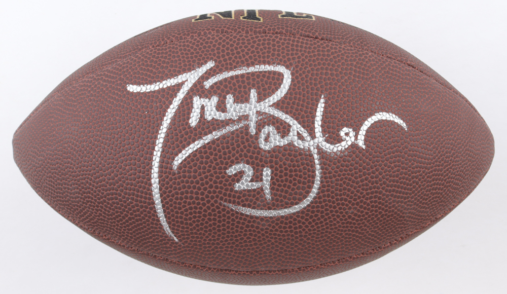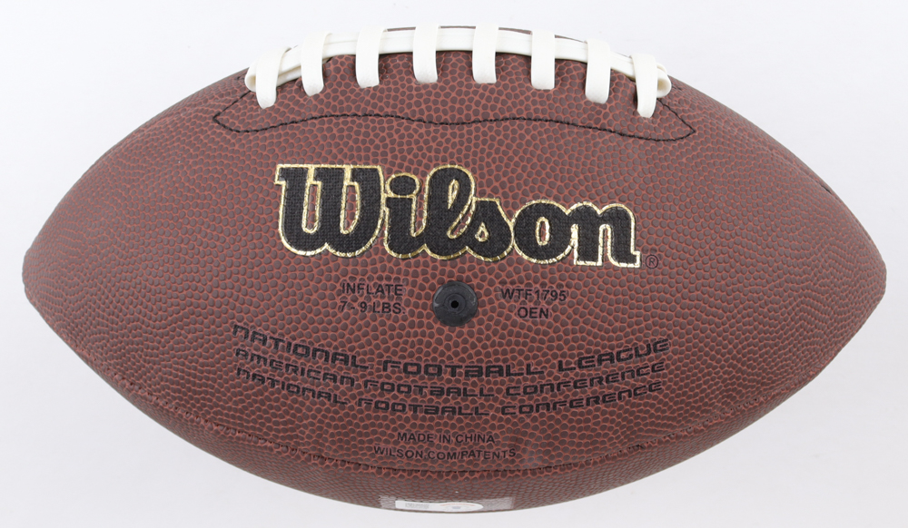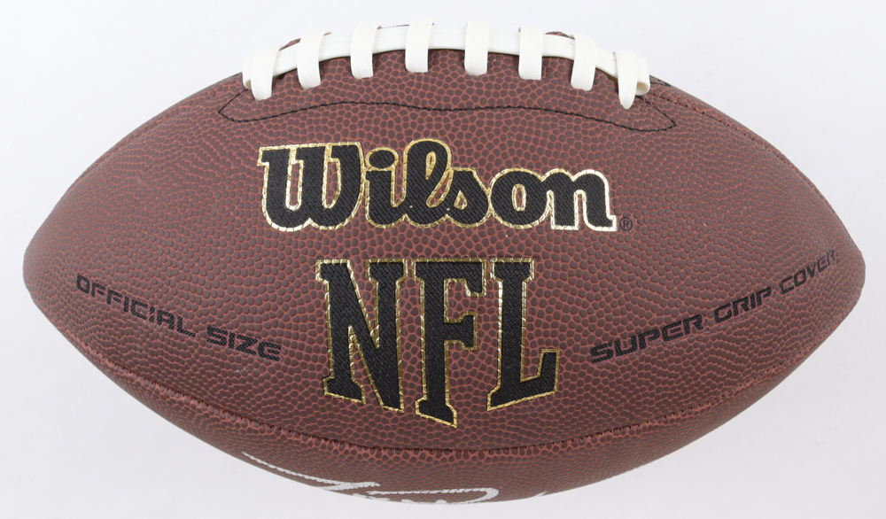 Wilson Super Grip Cover NFL football has been hand-signed by Tiki Barber (New York Giants).