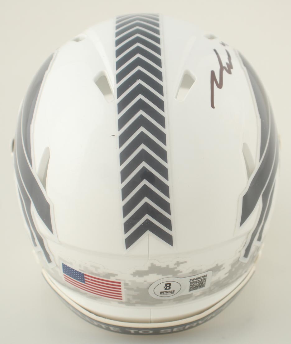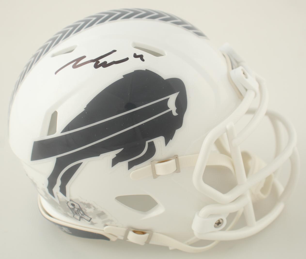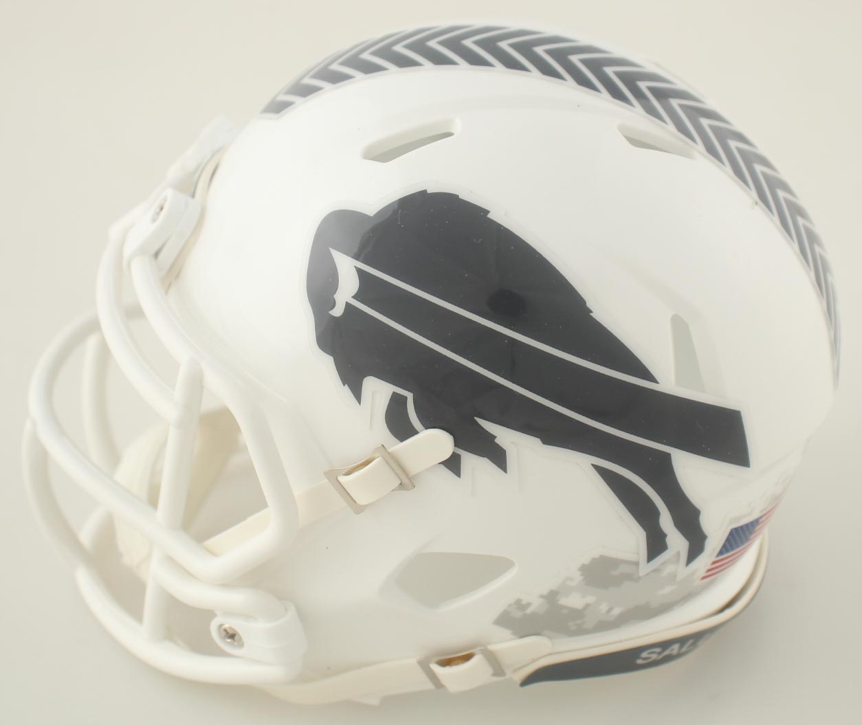 Riddell Buffalo Bills Salute to Service Alternate Speed mini helmet. Hand-signed by James Cook.