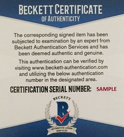 The autograph includes an official Beckett Authentication Services serially-numbered hologram and matching COA for authenticity purposes.