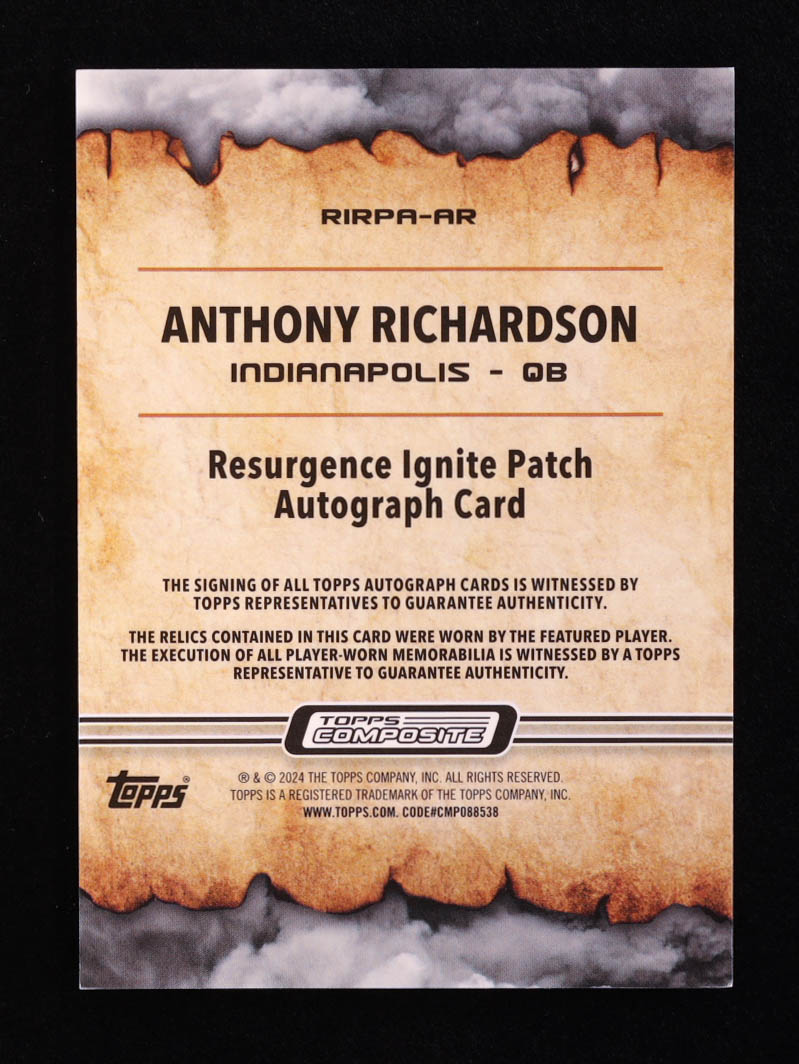 Anthony Richardson 2023 Topps Composite Resurgence Ignite Patch Autographs #RIRPAAR RC #041/149