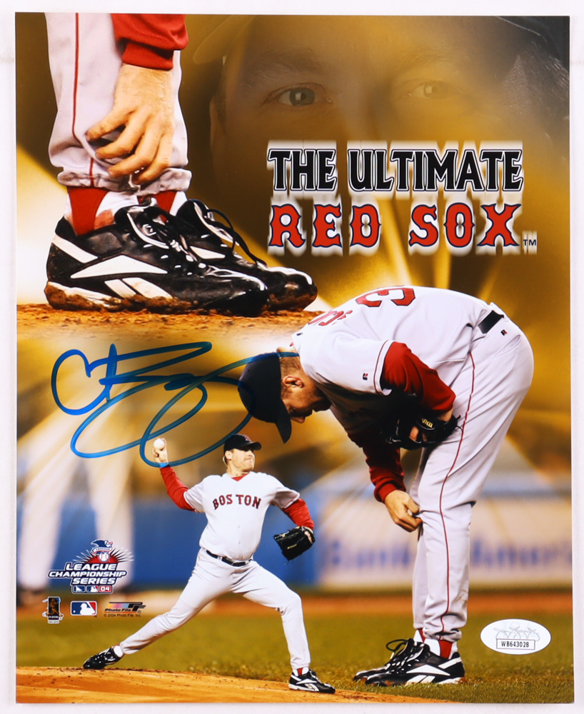 Photo measures 8" x 10" in size and has been hand-signed by Curt Schilling (Boston Red Sox).