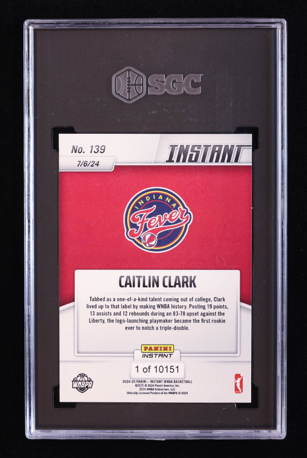 Caitlin Clark 2024-25 Panini Instant #139 RC (SGC 9)