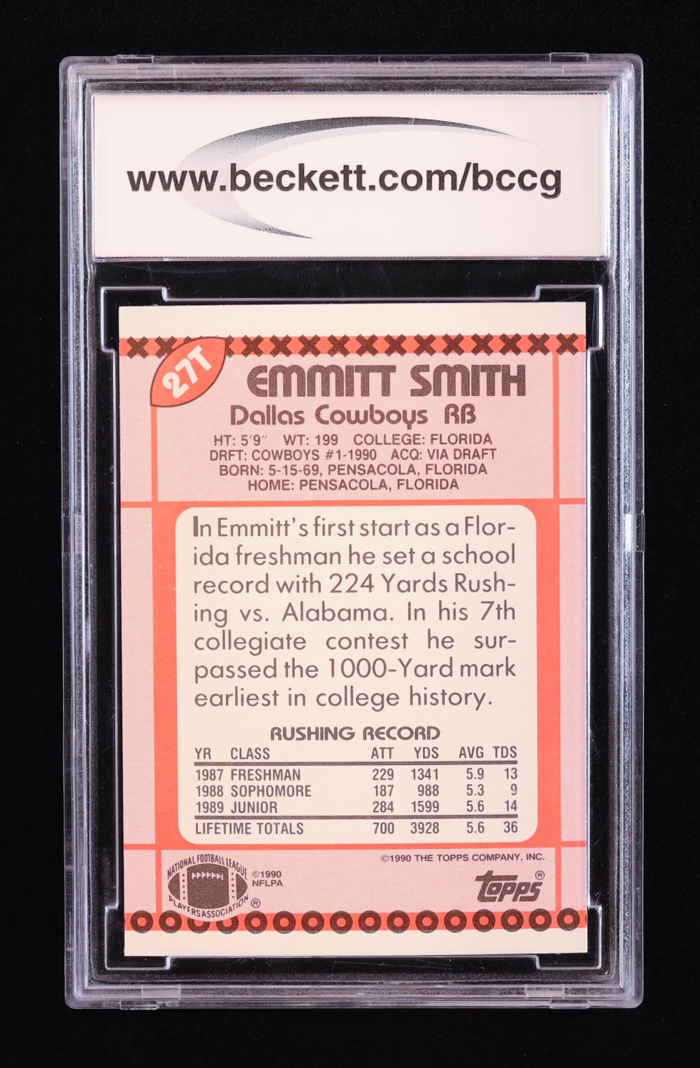 Emmitt Smith 1990 Topps Traded #27T RC (BCCG 10)