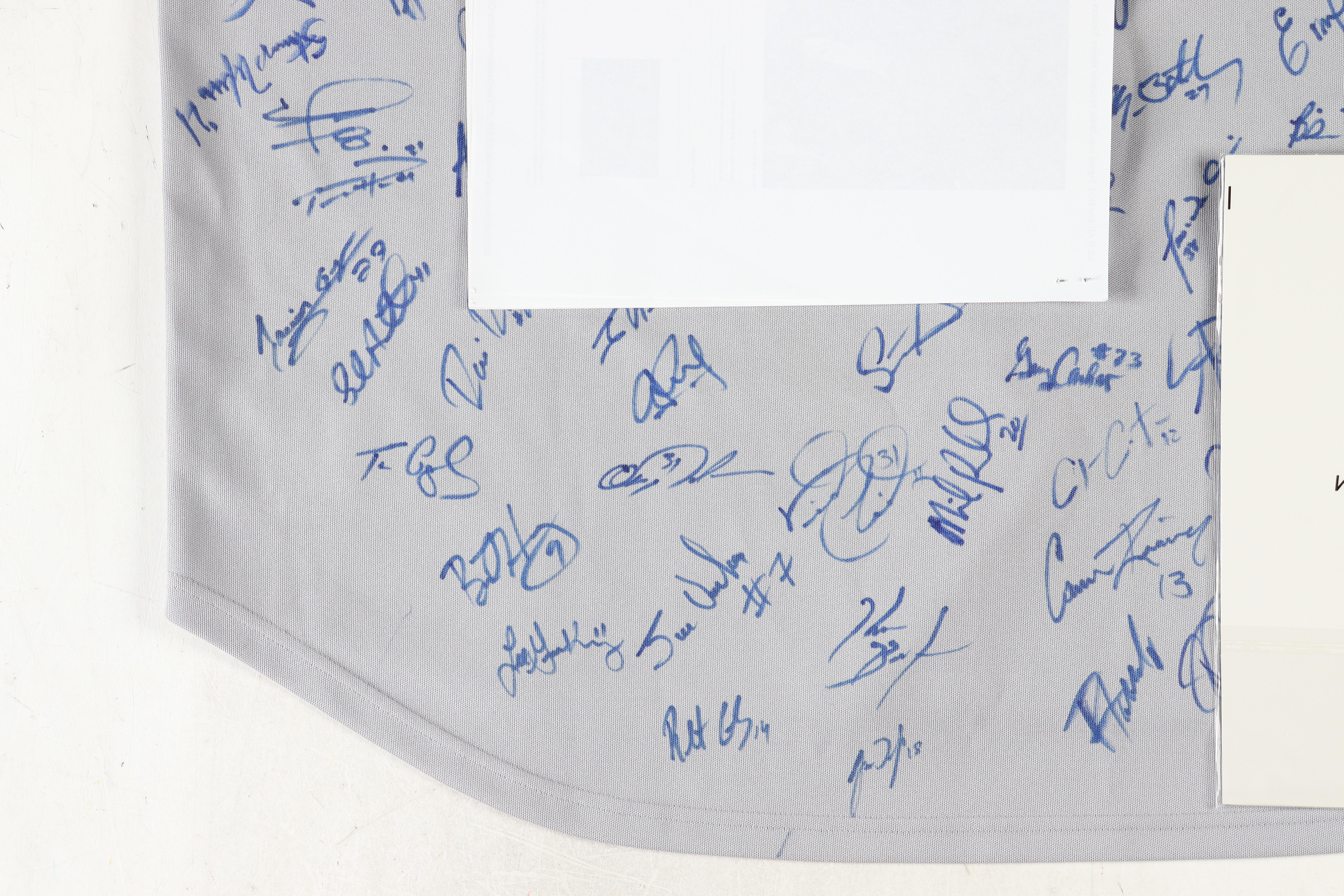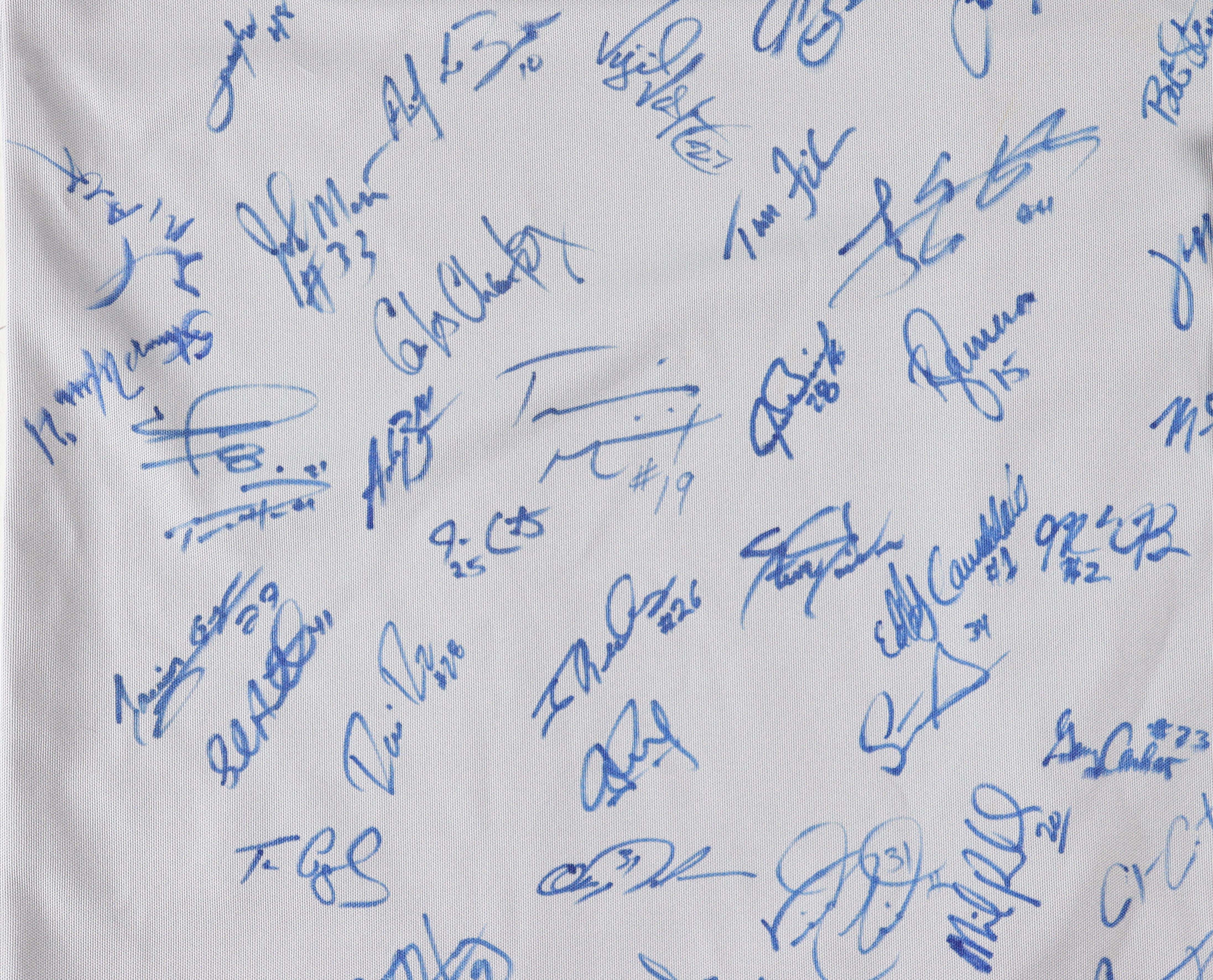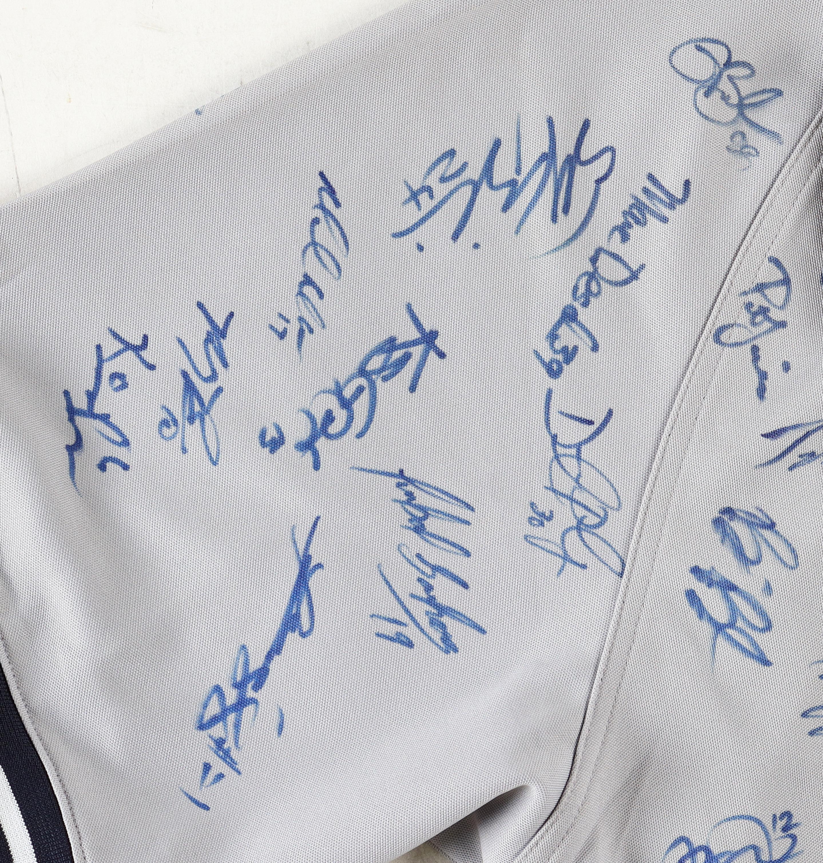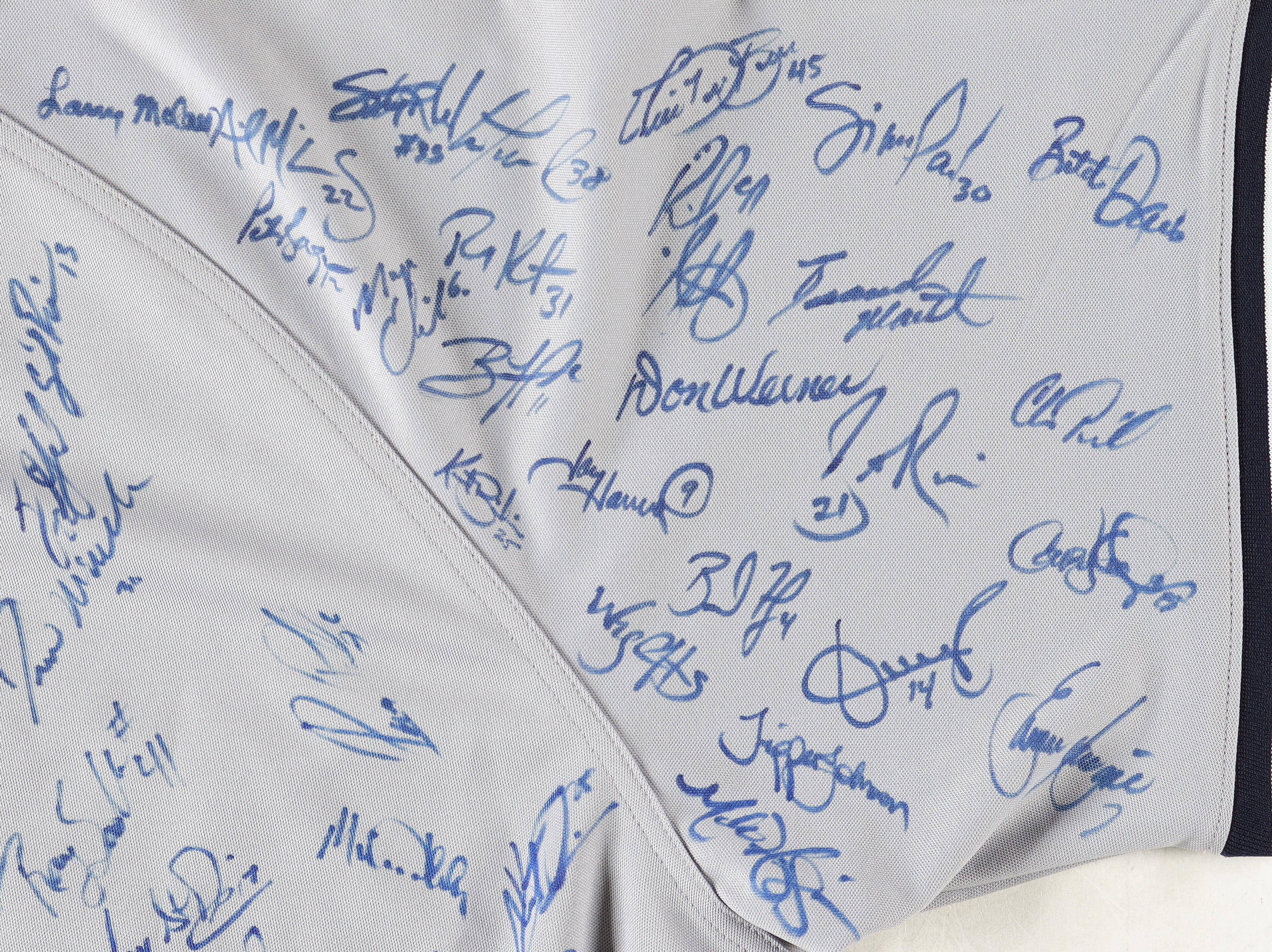 Other notable signers on the jersey include Dustin Pedroia, Jon Lester, Hanley Ramirez, Joba Chamberlain, Jose Miranda, Danny Werner, Anibal Sanchez, Phil Hughes, Manny Delcarmen, Ramon Pena, Danny Werner, Miguel Cabrera, Jose Batista, Doug Dyer, Ryan Cameron, Bob Stanley, Jose Tabata, Austin Romine, Pat Neshek, and Brian Bannister!
