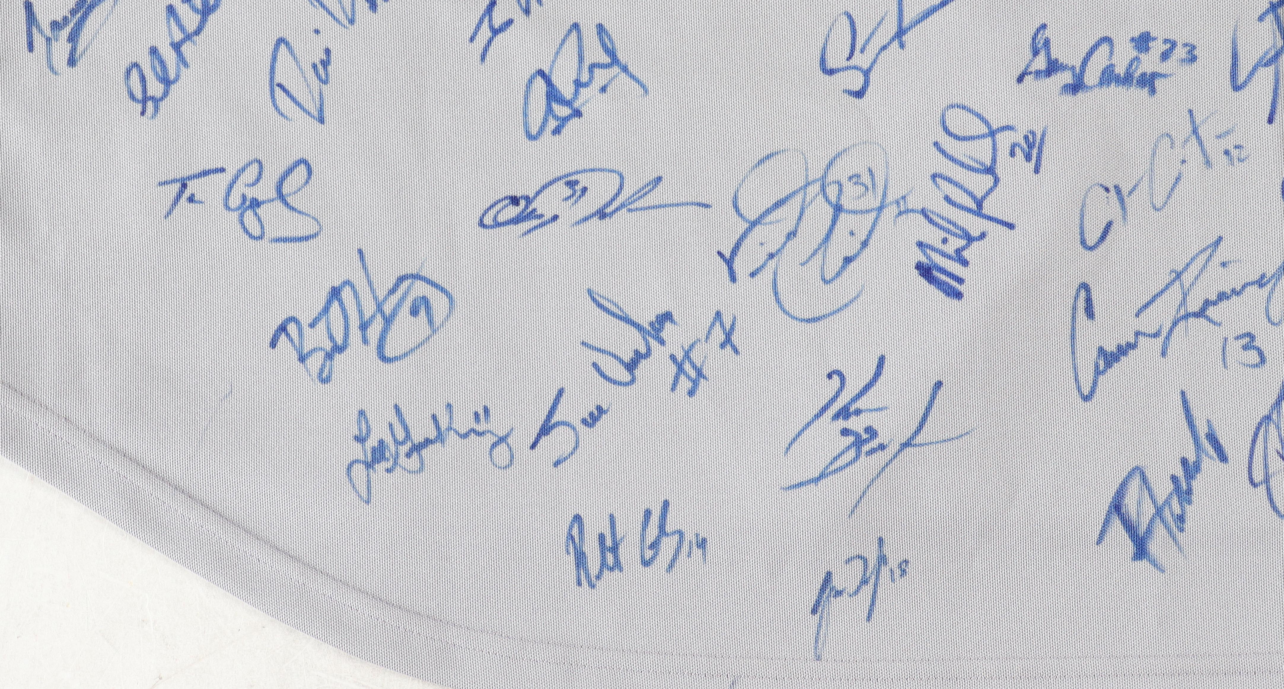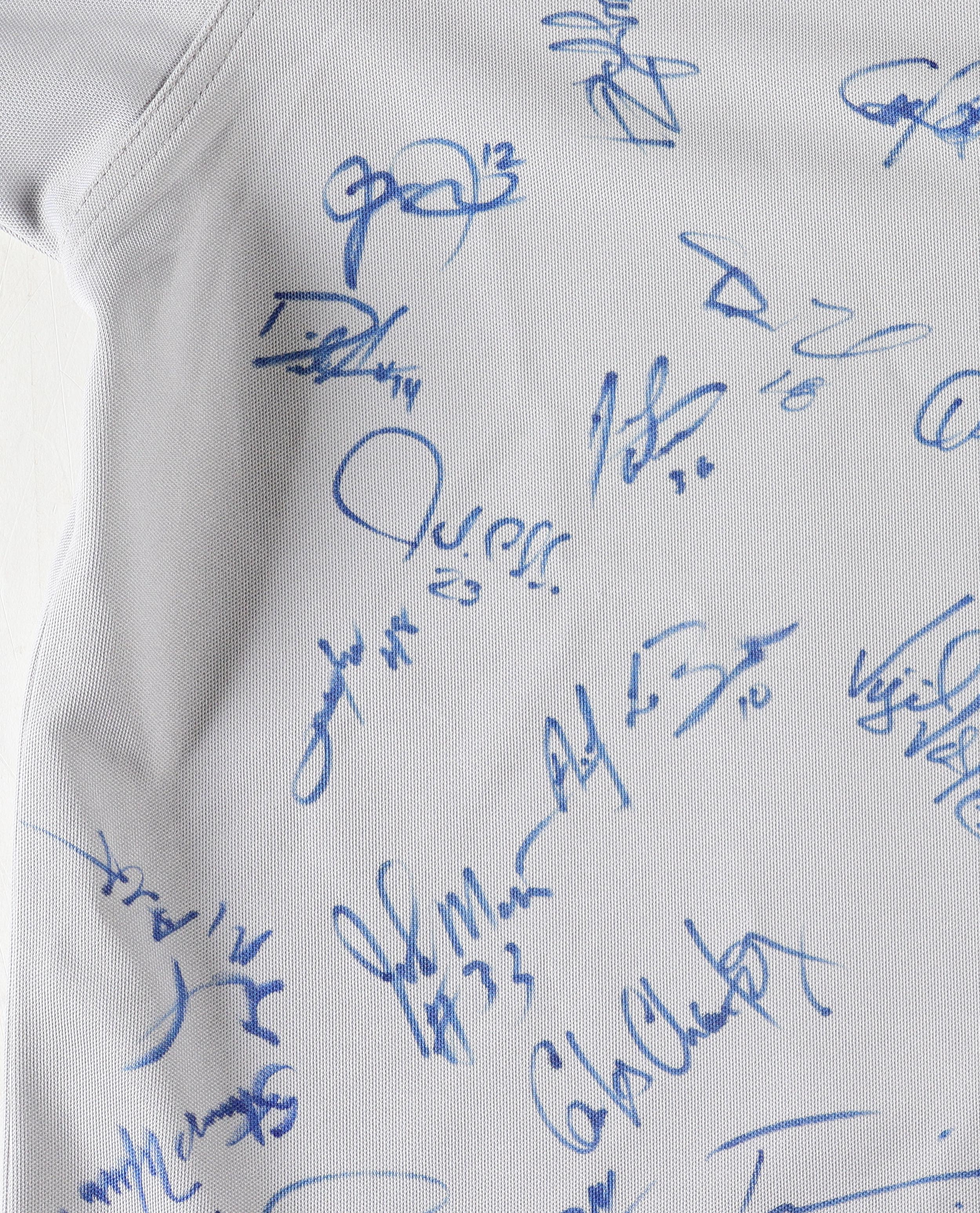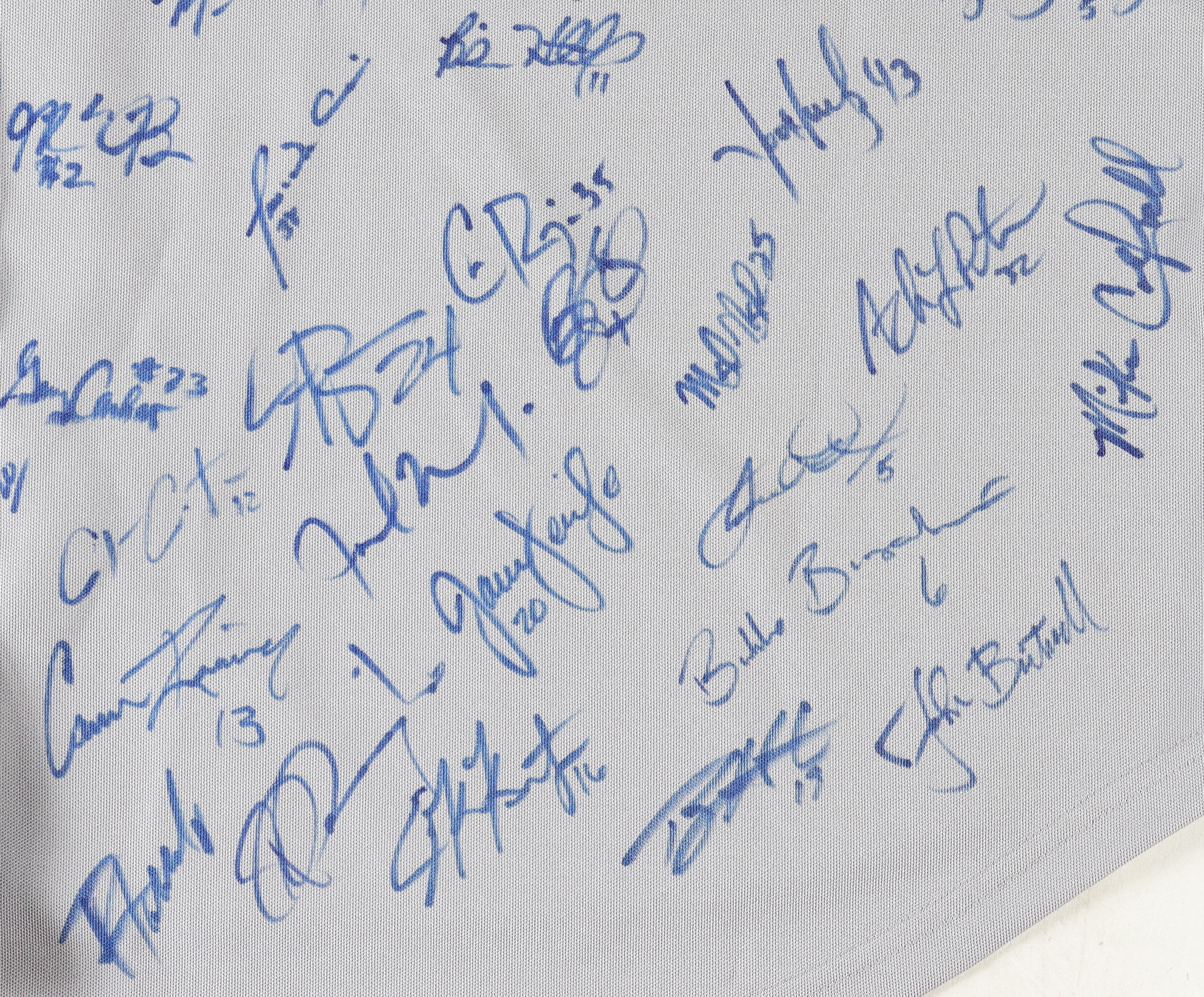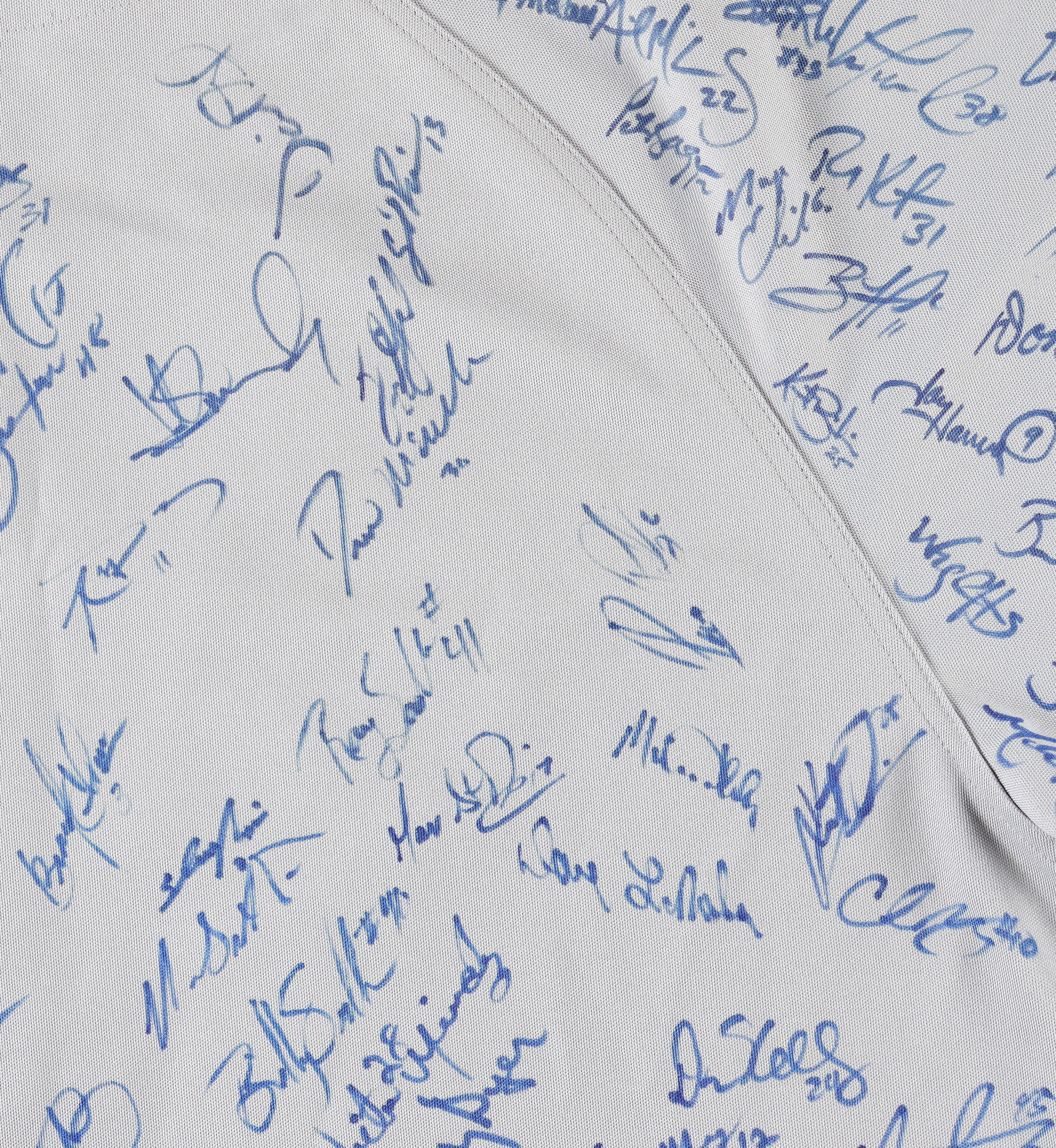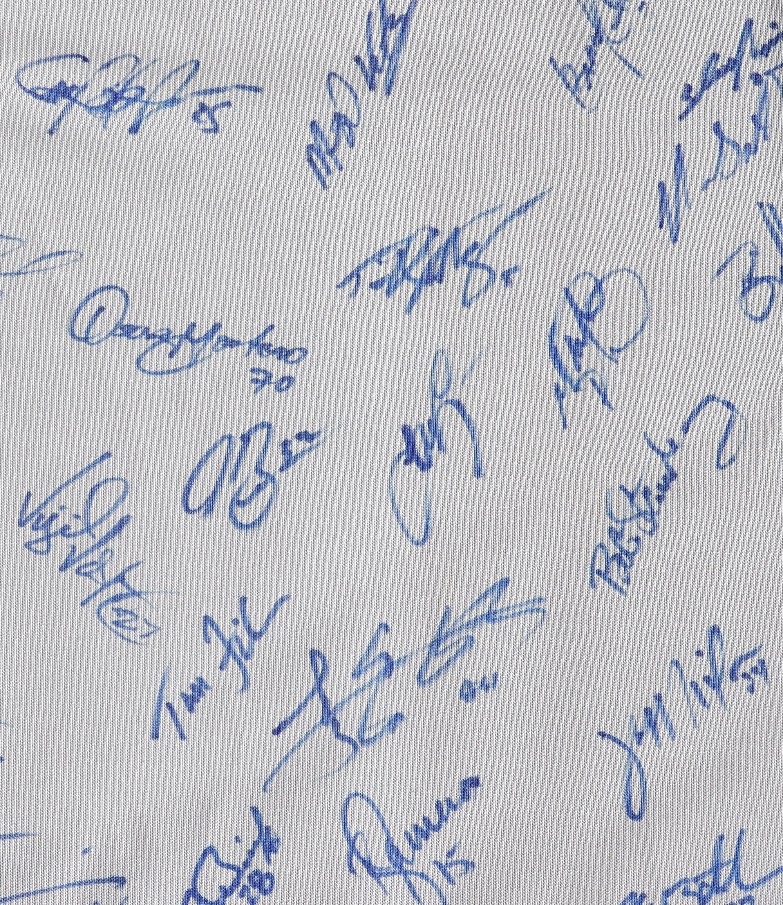 Other notable signers on the jersey include Dustin Pedroia, Jon Lester, Hanley Ramirez, Joba Chamberlain, Jose Miranda, Danny Werner, Anibal Sanchez, Phil Hughes, Manny Delcarmen, Ramon Pena, Danny Werner, Miguel Cabrera, Jose Batista, Doug Dyer, Ryan Cameron, Bob Stanley, Jose Tabata, Austin Romine, Pat Neshek, and Brian Bannister!
