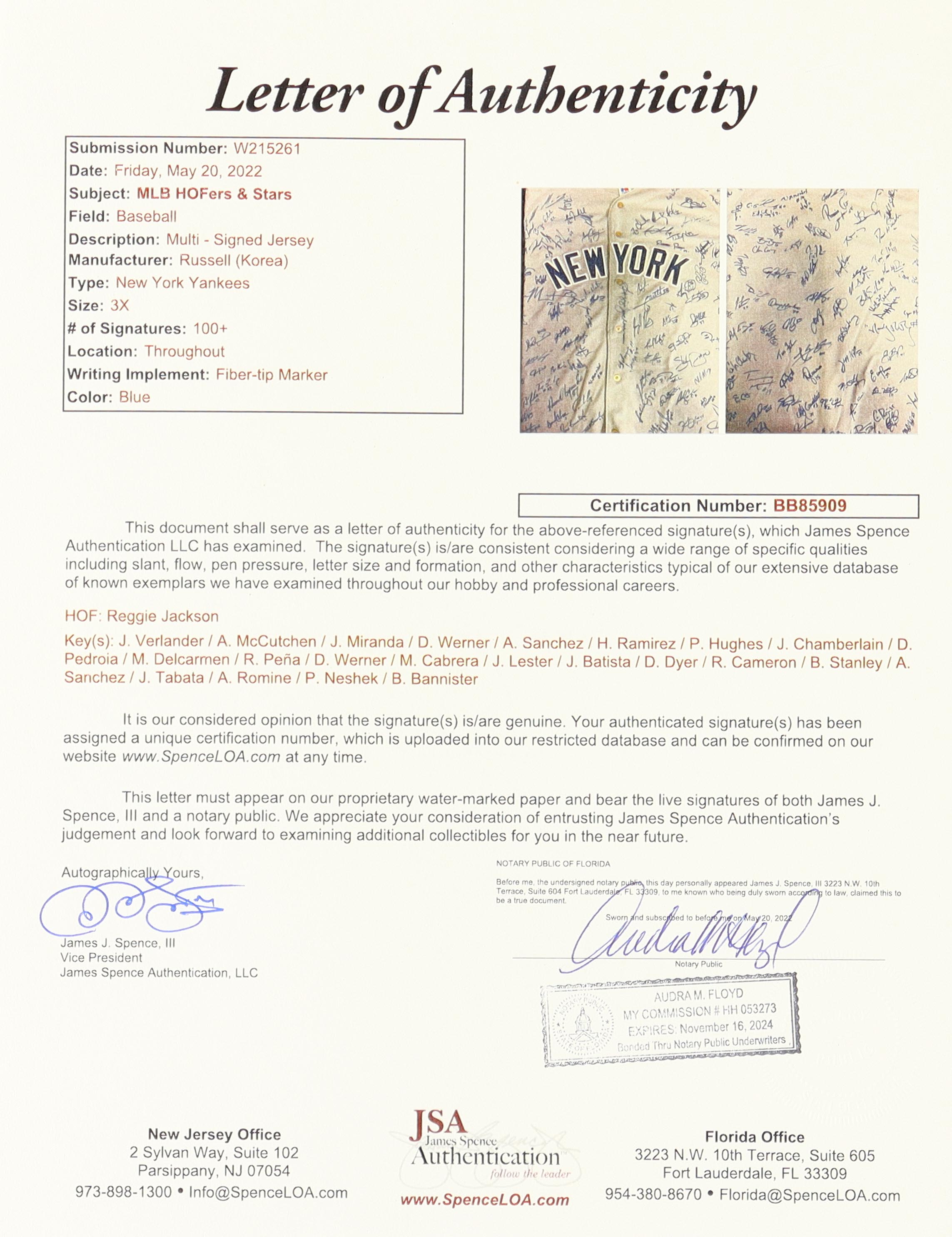 Reggie Jackson, Justin Verlander, Andrew McCutchen, Miguel Cabrera | MLB Hall of Famers & Stars Jersey Signed By (100+) (JSA)