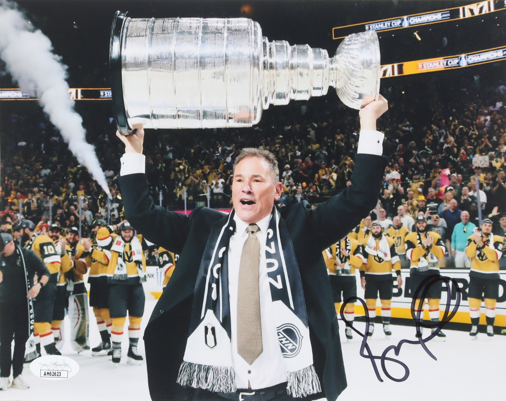 Photo measures 8" x 10" in size and has been hand-signed by Bruce Cassidy (Vegas Golden Knights).