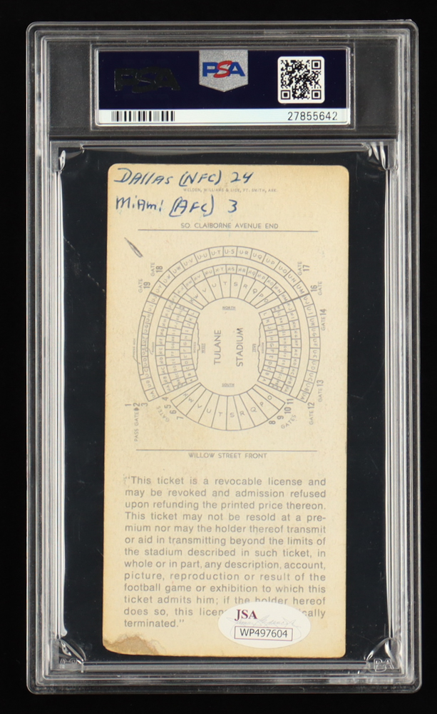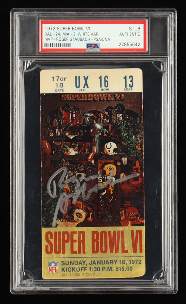 Roger Staubach Signed Super Bowl VI Ticket (PSA)